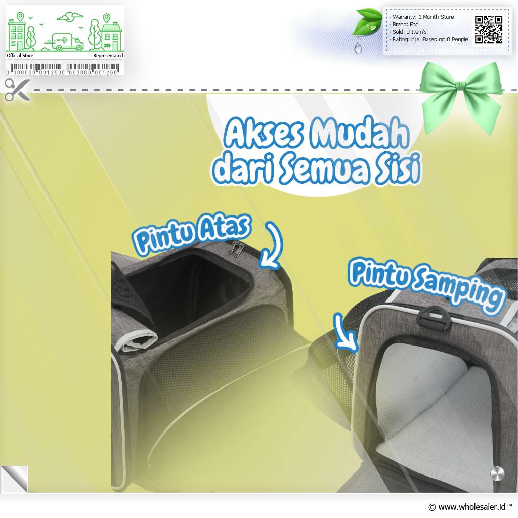 | Akses Mudah dari Semua Sisi Memasukkan dan mengeluarkan anabul lebih mudah berkat 2 pintu yang ada di bagian samping dan atas. Tak perlu lagi repot memosisikan anjing dan kucing untuk membuka tas. |