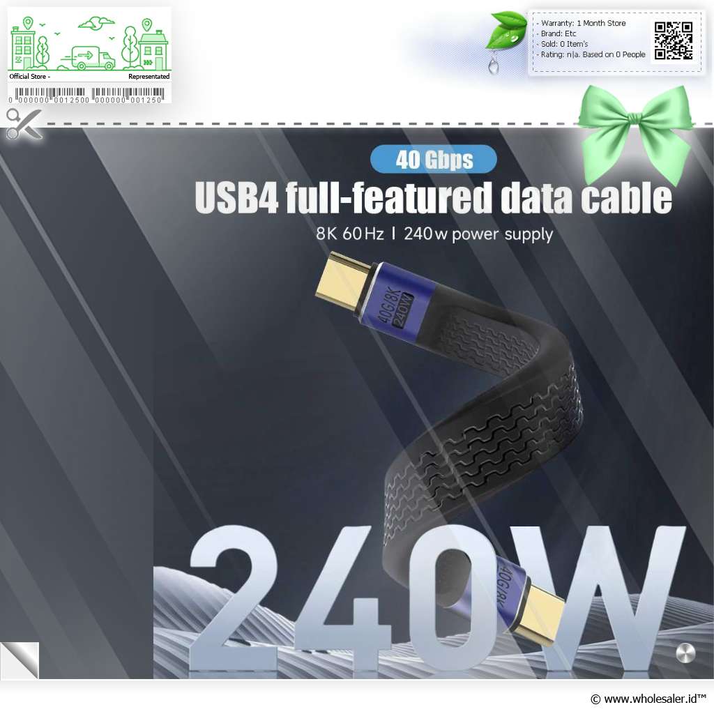 Fast Charging 240 W Kabel USB Type C ini mendukung pengisian daya super cepat hingga 240 W. |