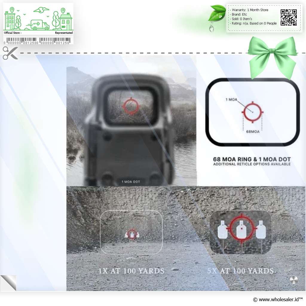 | Reticle 68 MOA Ring + 1 MOA Dot Reticle holografik ini dirancang agar Anda bisa menangkap target lebih cepat tanpa mengorbankan akurasi. |