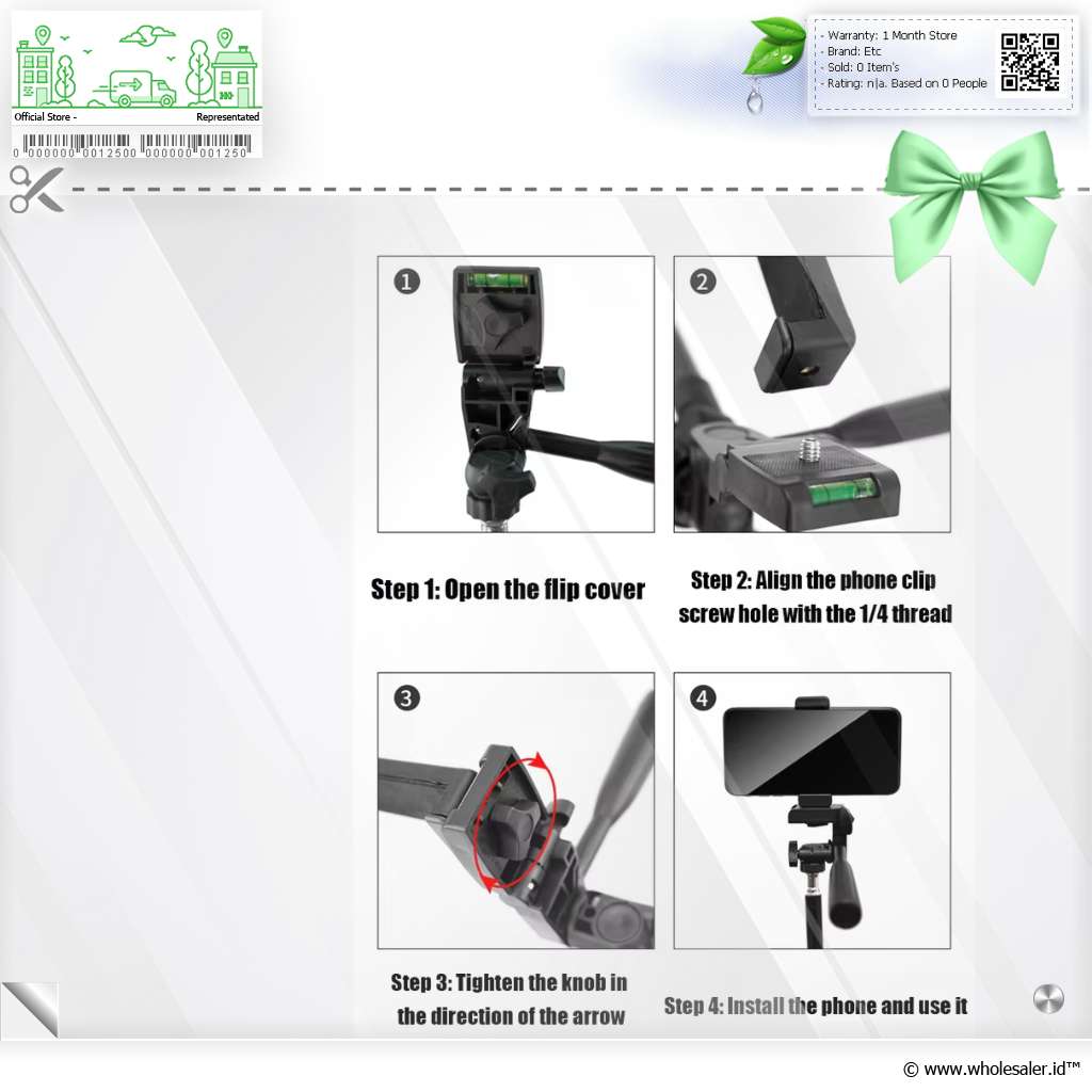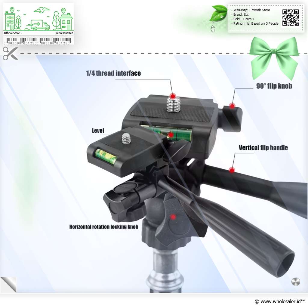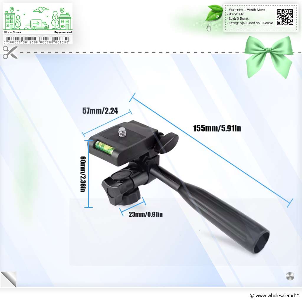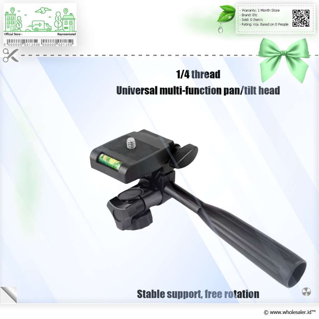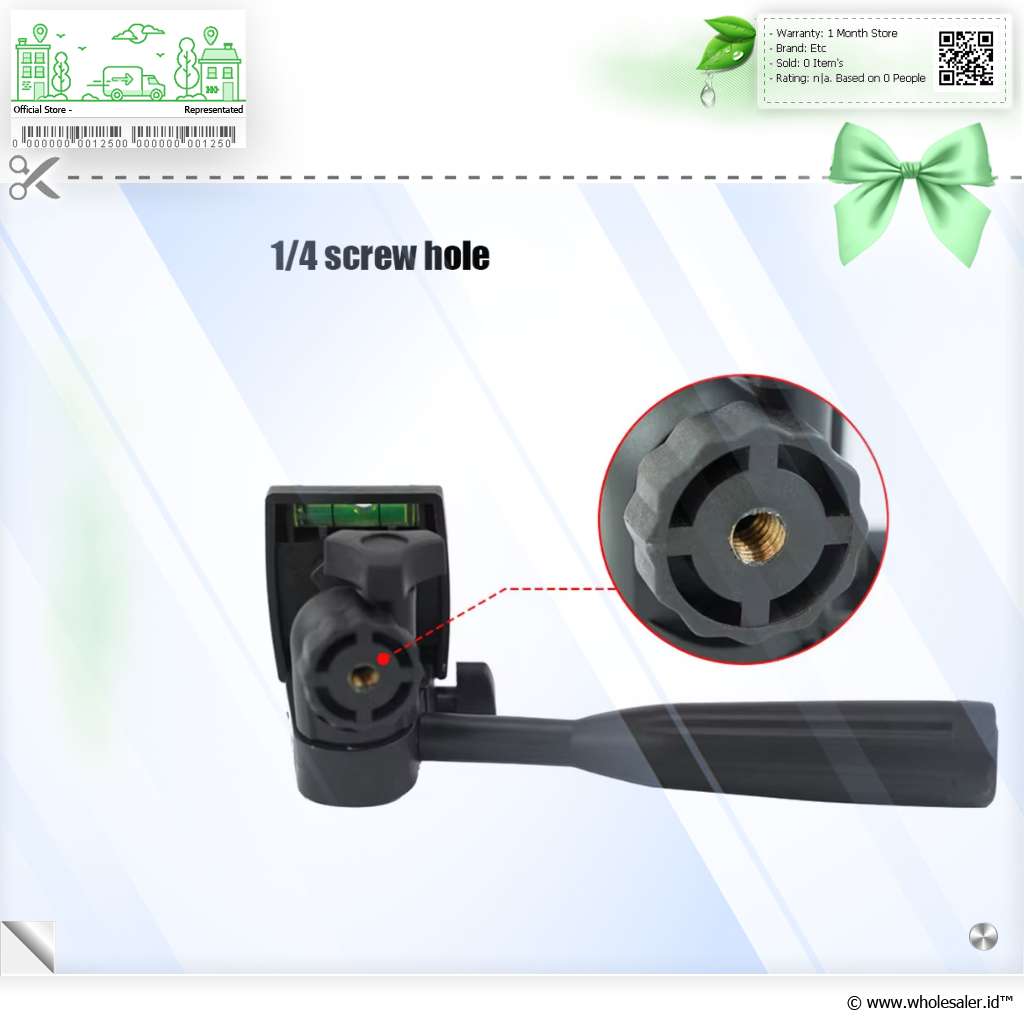 | Kompatibilitas Universal Tripod head ini menawarkan kompatibilitas yang luas karena menggunakan sekrup standar 1/4 inch. Standar ini memungkinkannya dipasang ke kamera SLR mikro dan juga holder untuk smartphone. |