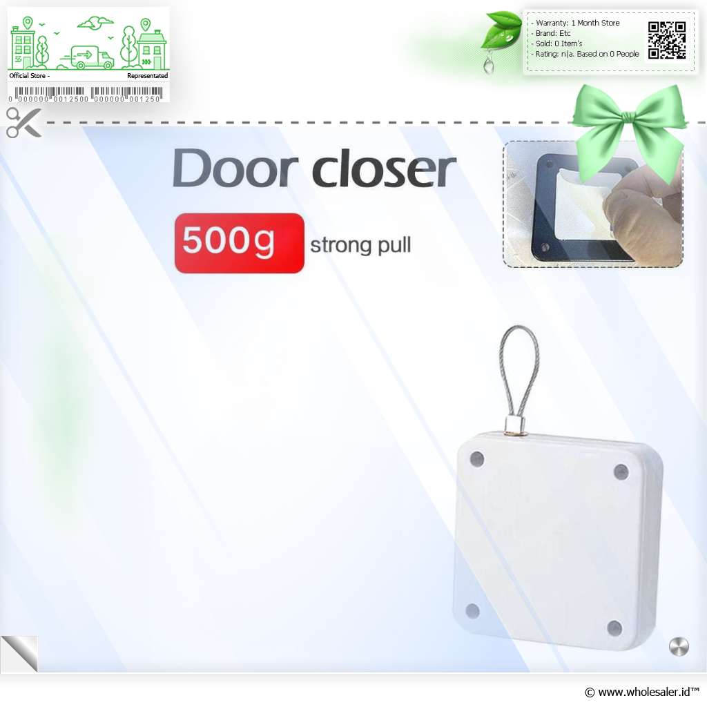 Mudah Dipasang Pemasangan sangat mudah karena paket pembelian sudah lengkap. Cukup lepaskan lapisan perekat, tempelkan produk pada daun pintu, lalu pasang bagian pengait di dinding (atau sebaliknya). Penutup pintu otomatis pun siap digunakan. |
