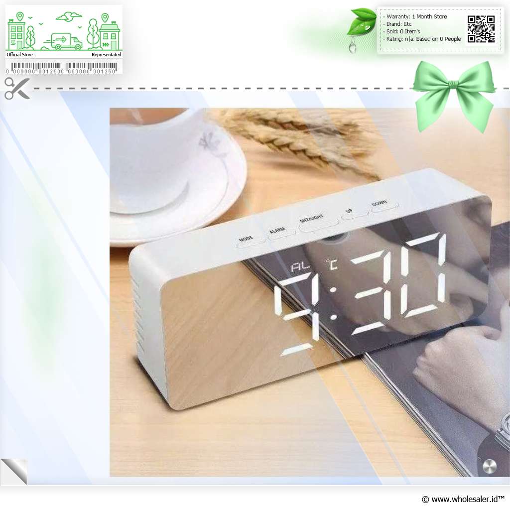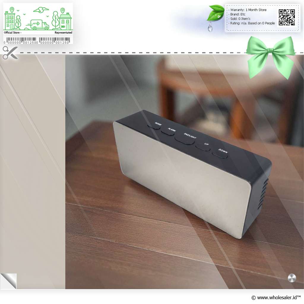 Jam weker ini hadir dengan desain minimalis dan modern, dilengkapi tampilan angka digital yang jelas. Bagian depannya menggunakan bahan menyerupai cermin, memberikan efek refleksi yang elegan sekaligus menambah nilai estetika ruangan.