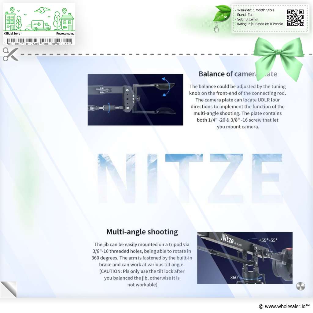 Tingkatkan kualitas produksi video Anda ke level profesional dengan mini jimmy jib dari Nitze. Solusi ideal bagi videografer yang ingin menghadirkan gerakan kamera super mulus, dramatis, dan sinematik tanpa harus membawa crane besar yang berat. Dengan desain yang presisi dan kompatibilitas bowl 100 mm, perangkat ini cocok untuk berbagai jenis kamera profesional, camcorder, mirrorless, DSLR, hingga cinema camera.