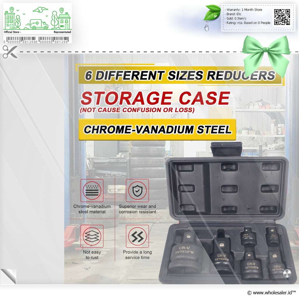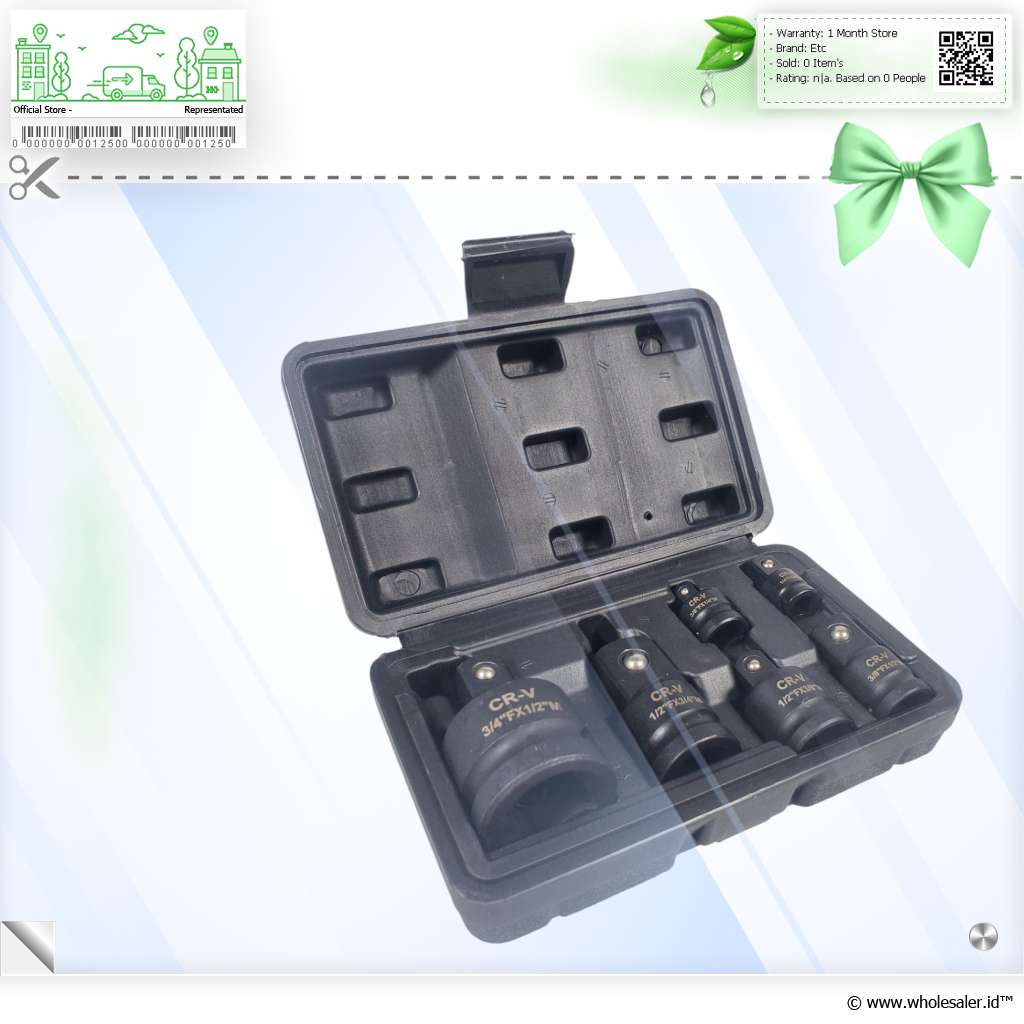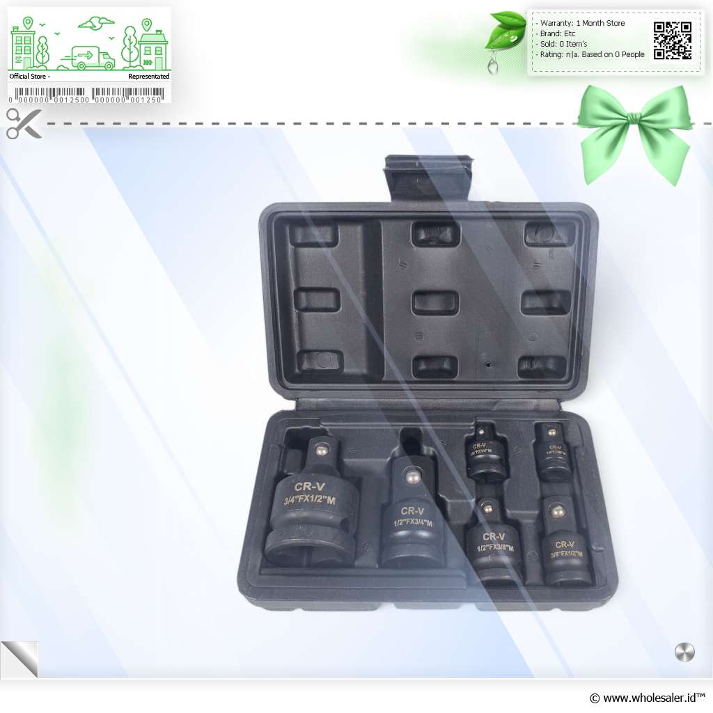 | Lain-lain | : | Size Socket 1/4 Inch to 3/8 Inch 3/8 Inch to 1/4 Inch 3/8 Inch to 1/2 Inch 1/2 Inch to 3/8 Inch 1/2 Inch to 3/4 Inch 3/4 Inch to 1/2 Inch |