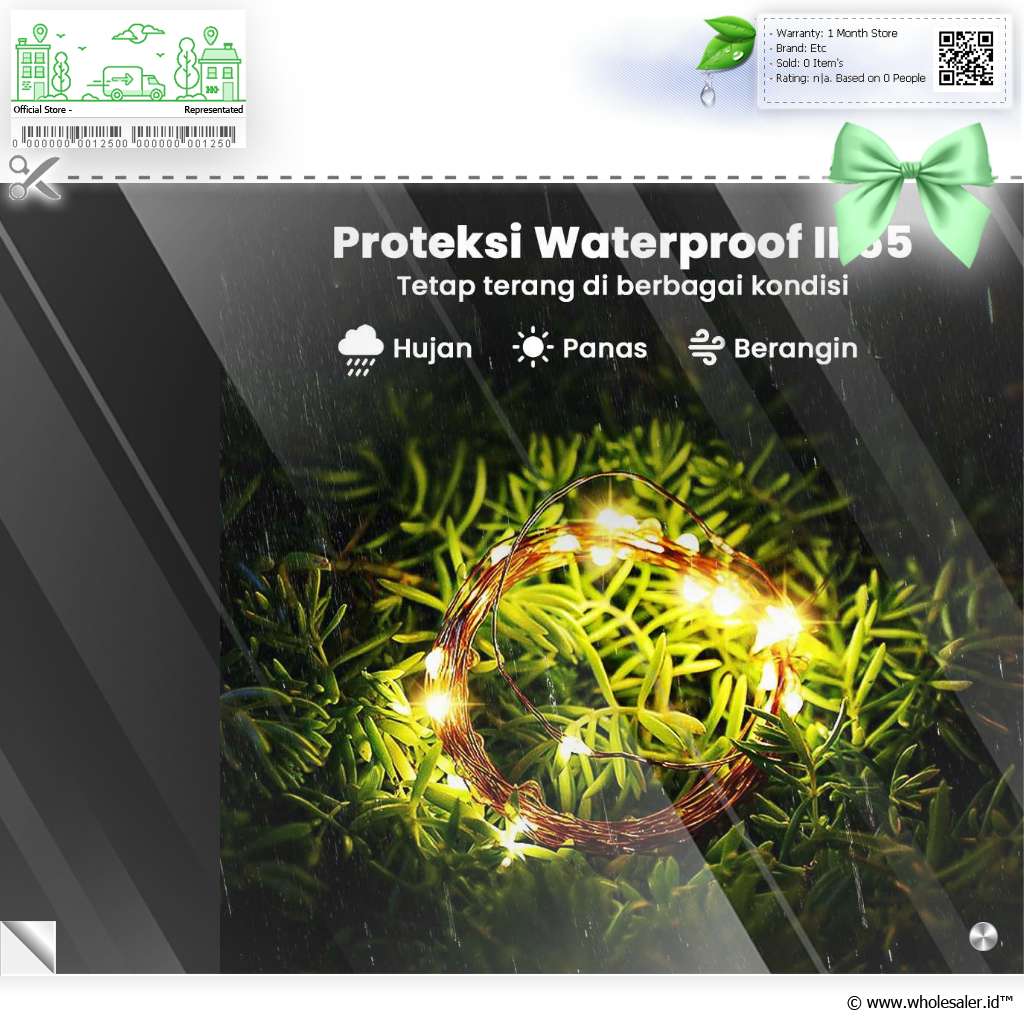 Proteksi Waterproof Proteksi waterproof yang digunakan membuat lampu hias tahan air dan debu. Gunakan untuk menerangi rumah di berbagai cuaca, mulai dari hujan hingga panas tanpa masalah. |