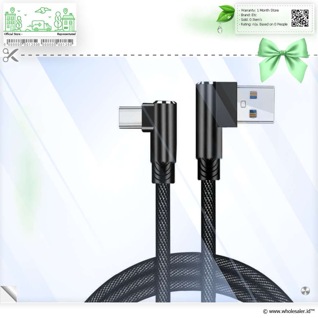 - 1 x OLF Kabel Charger USB Type C Multifungsi L Shape Braided 2.4A/5V 2M - OL951