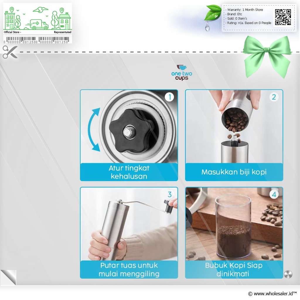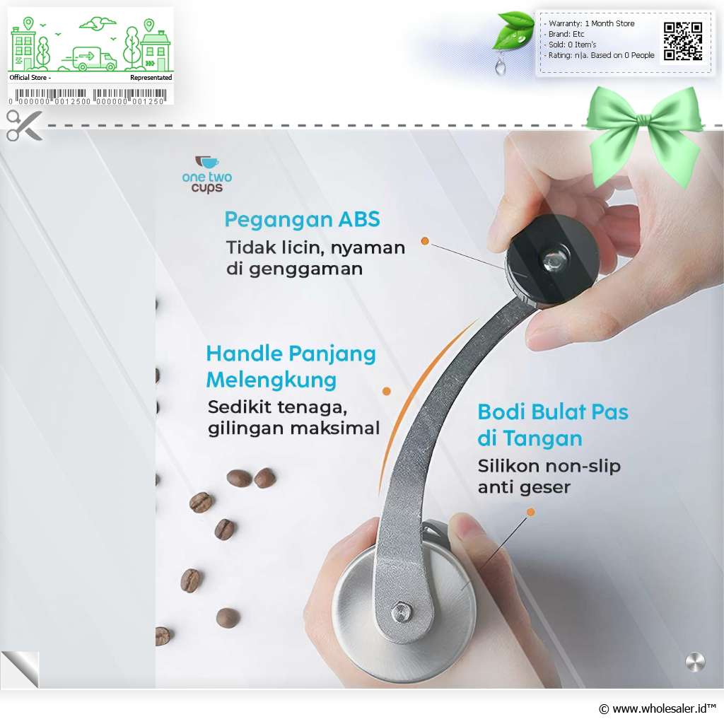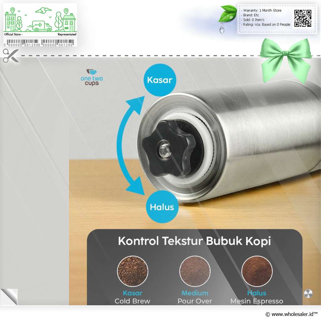 Informasi Produk One Two Cups Alat Penggiling Kopi Manual Coffee Grinder Adjustable - OTC48