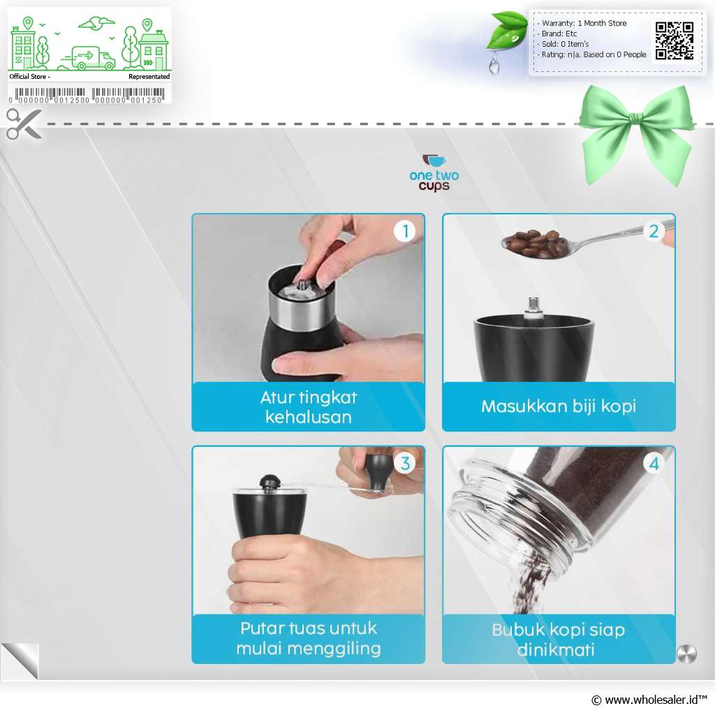 - 1 x One Two Cups Alat Penggiling Kopi Manual Coffee Grinder Adjustable - TS-01