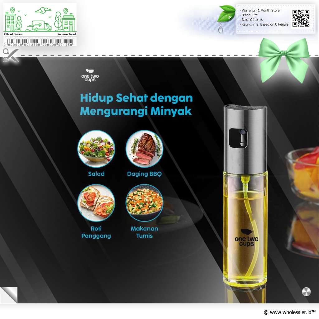 Hasilkan masakan yang lebih sehat dengan penggunaan minyak yang lebih sedikit menggunakan botol minyak spray dari One Two Cups. Kontrol jumlah minyak menjadi lebih mudah namun dengan hasil yang merata. Anda bisa menggunakannya langsung di atas makanan atau di atas wajan saat ingin memasak.