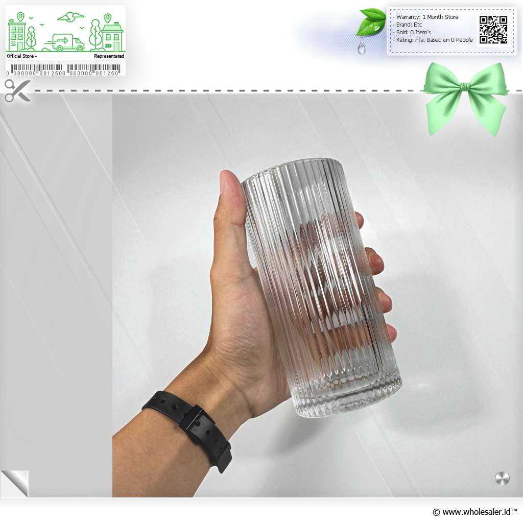 Informasi Produk One Two Cups Gelas Kaca Aesthetic Kopi Teh Simple Stripe Glass - IN-34