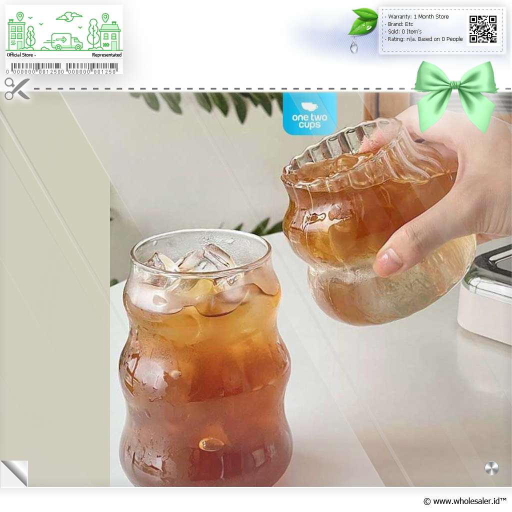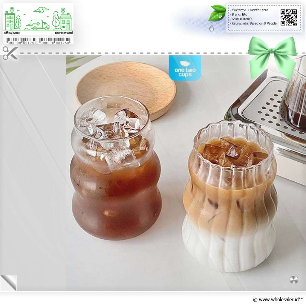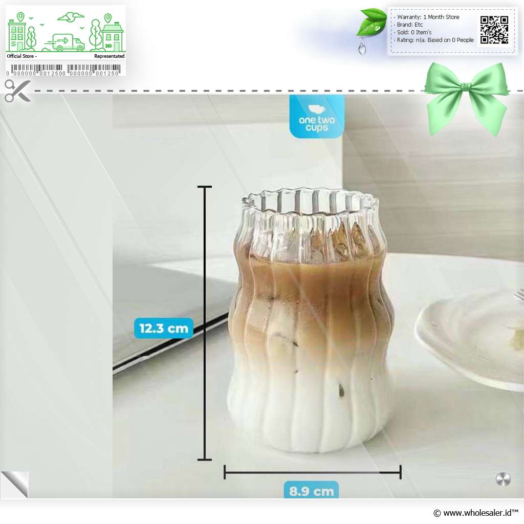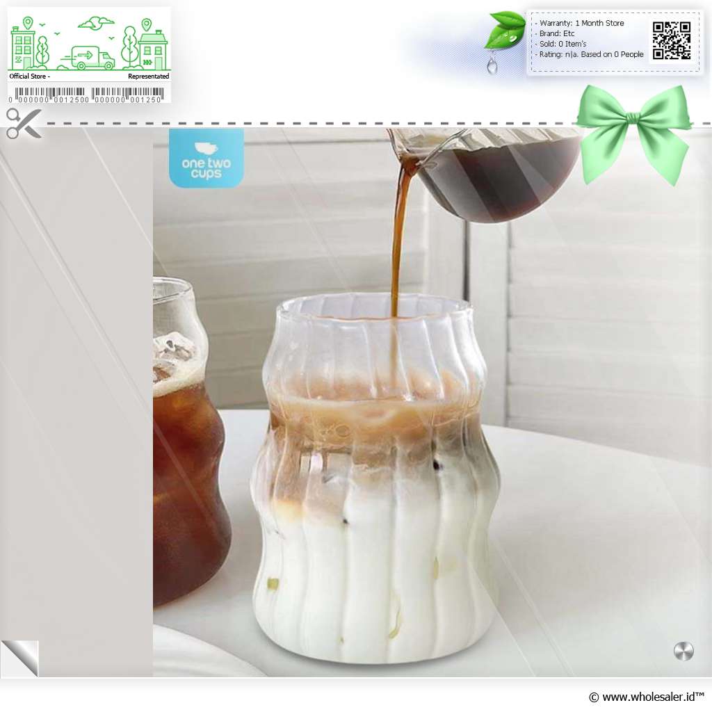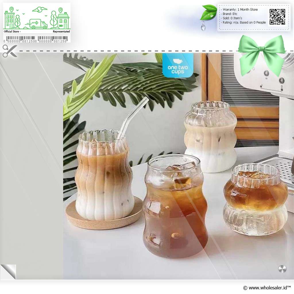 Informasi Produk One Two Cups Gelas Kaca Aesthetic Kopi Teh Wave Stripe Shape - GK24