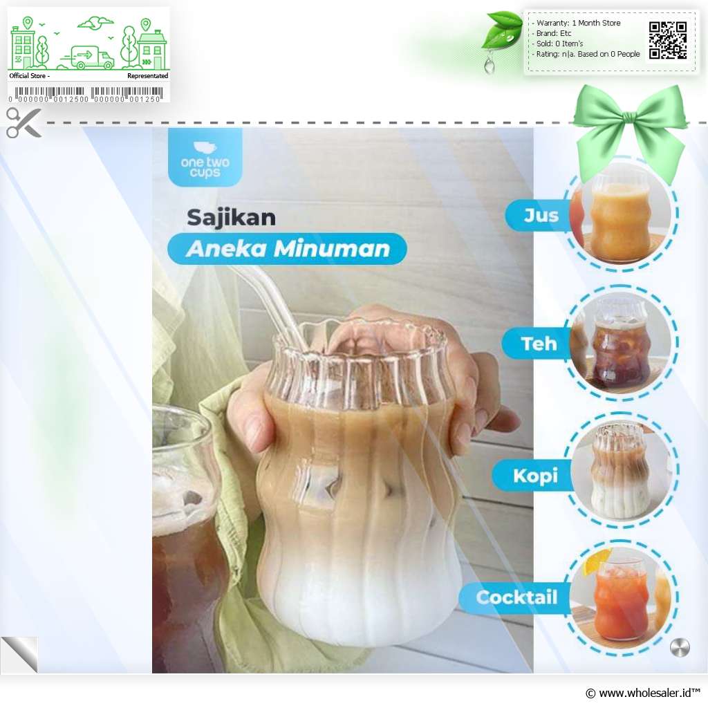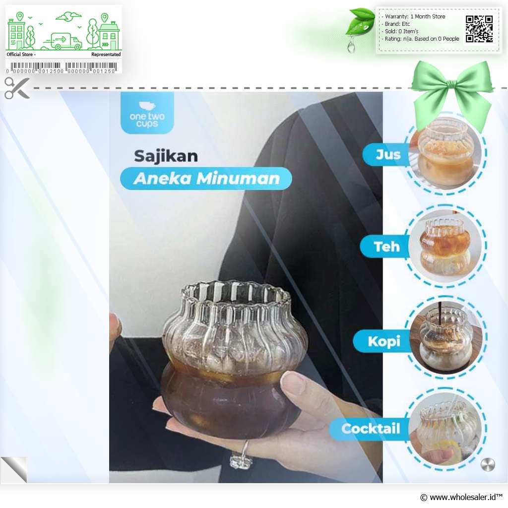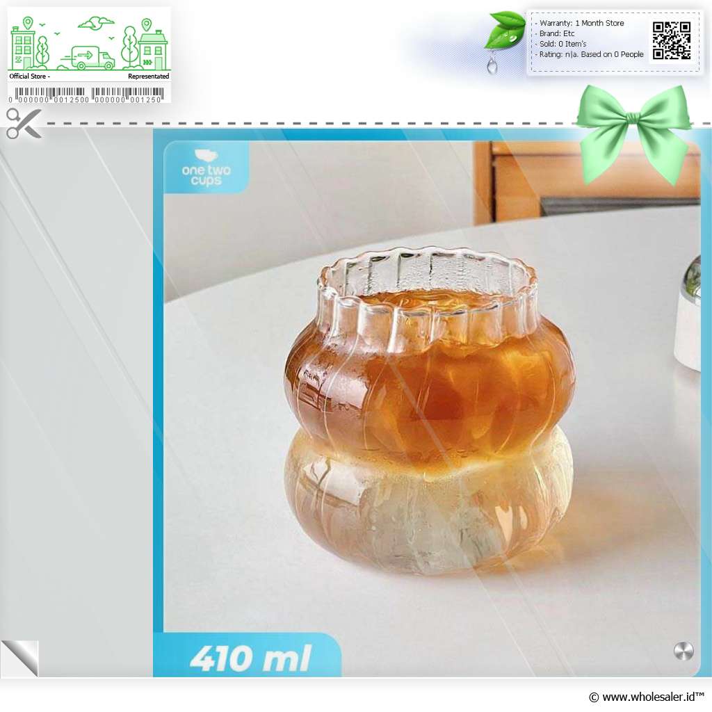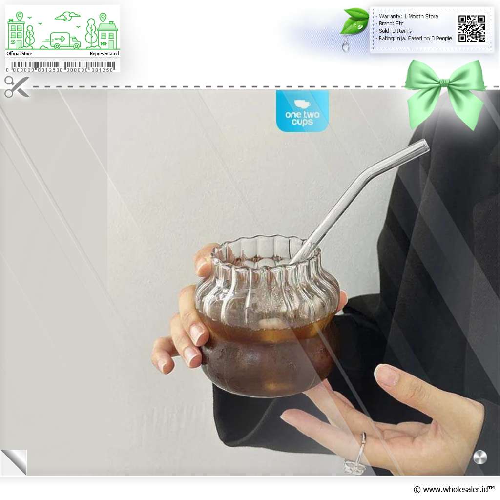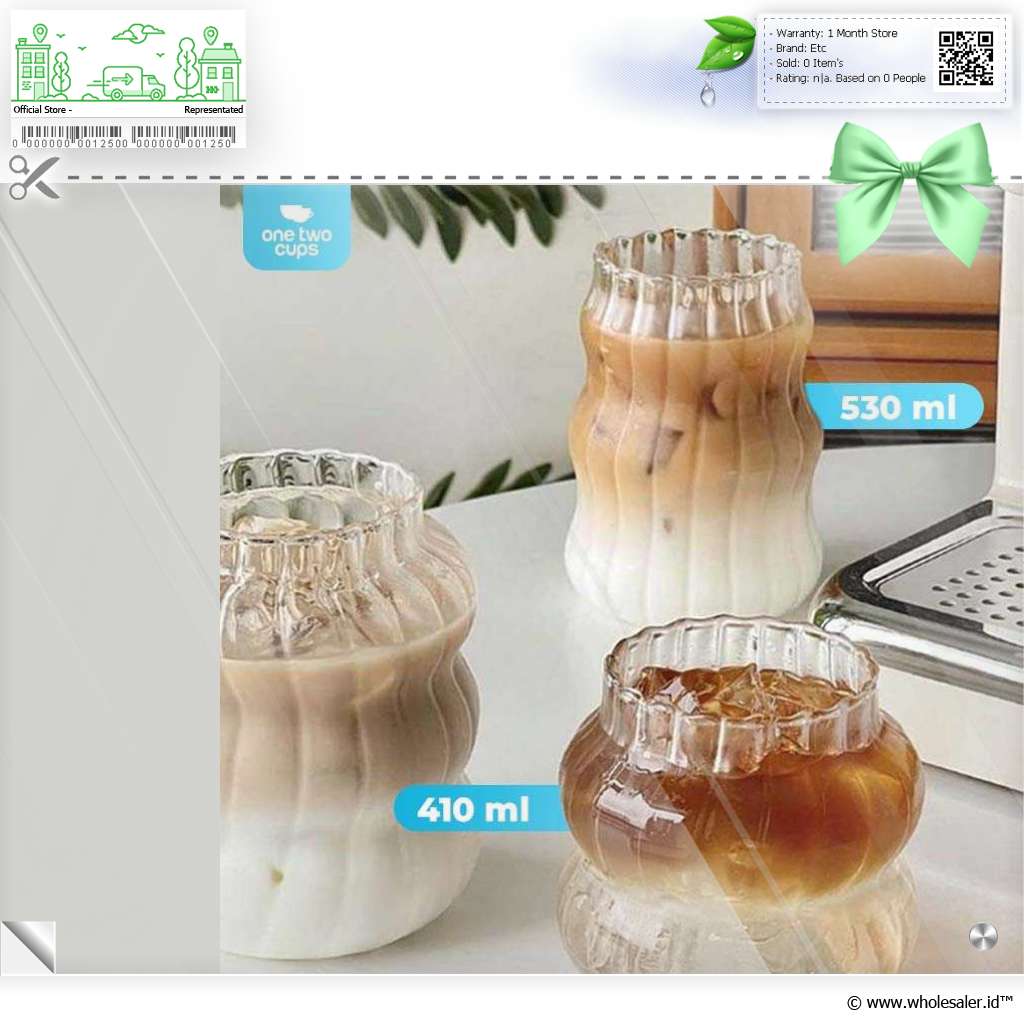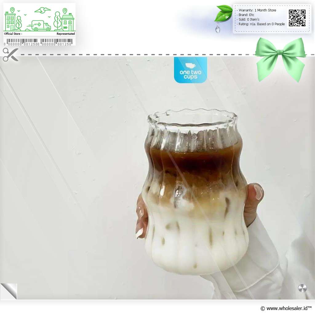 Informasi Produk One Two Cups Gelas Kaca Aesthetic Kopi Teh Wave Stripe Shape - GK24