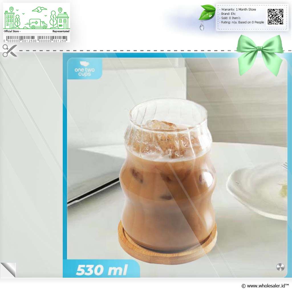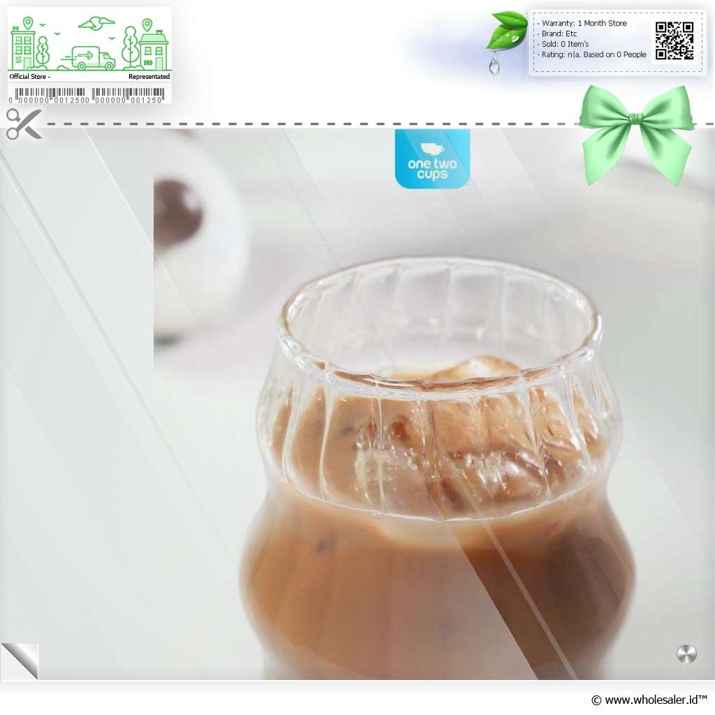 - 1 x One Two Cups Gelas Kaca Aesthetic Kopi Teh Wave Stripe Shape - GK24