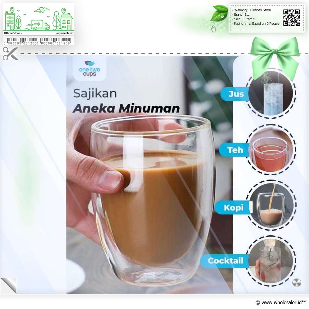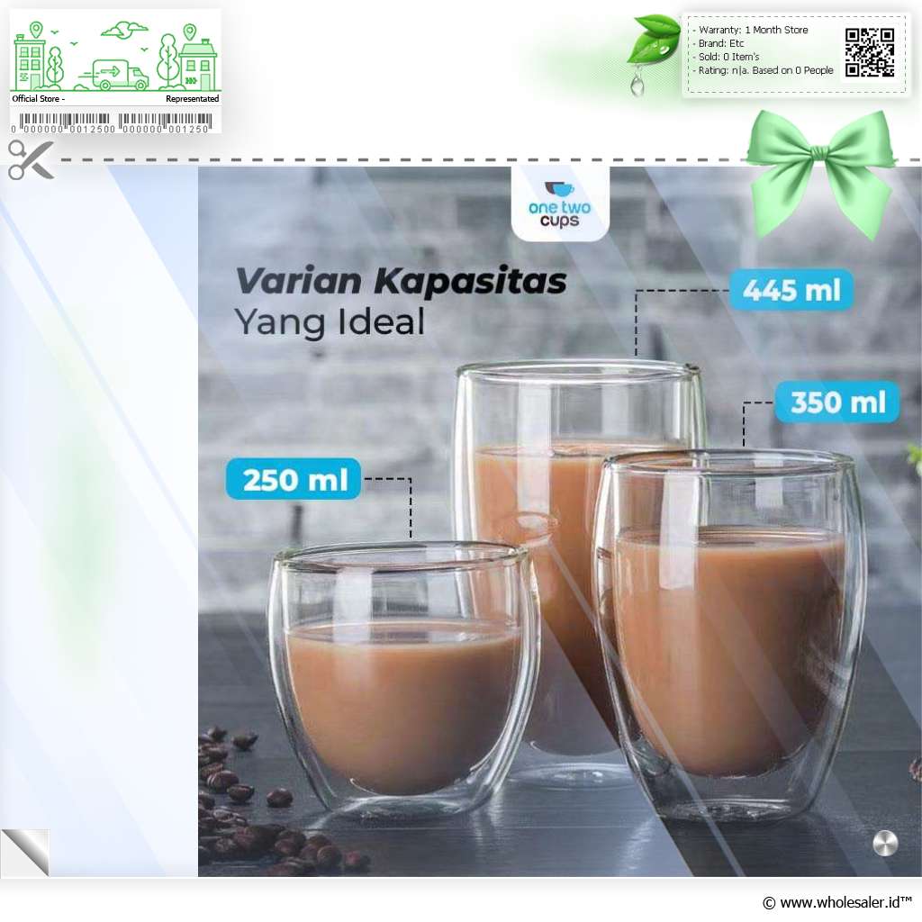 - 1 x One Two Cups Gelas Kaca Aesthetic Tahan Panas Double Wall Glass - PLY1704