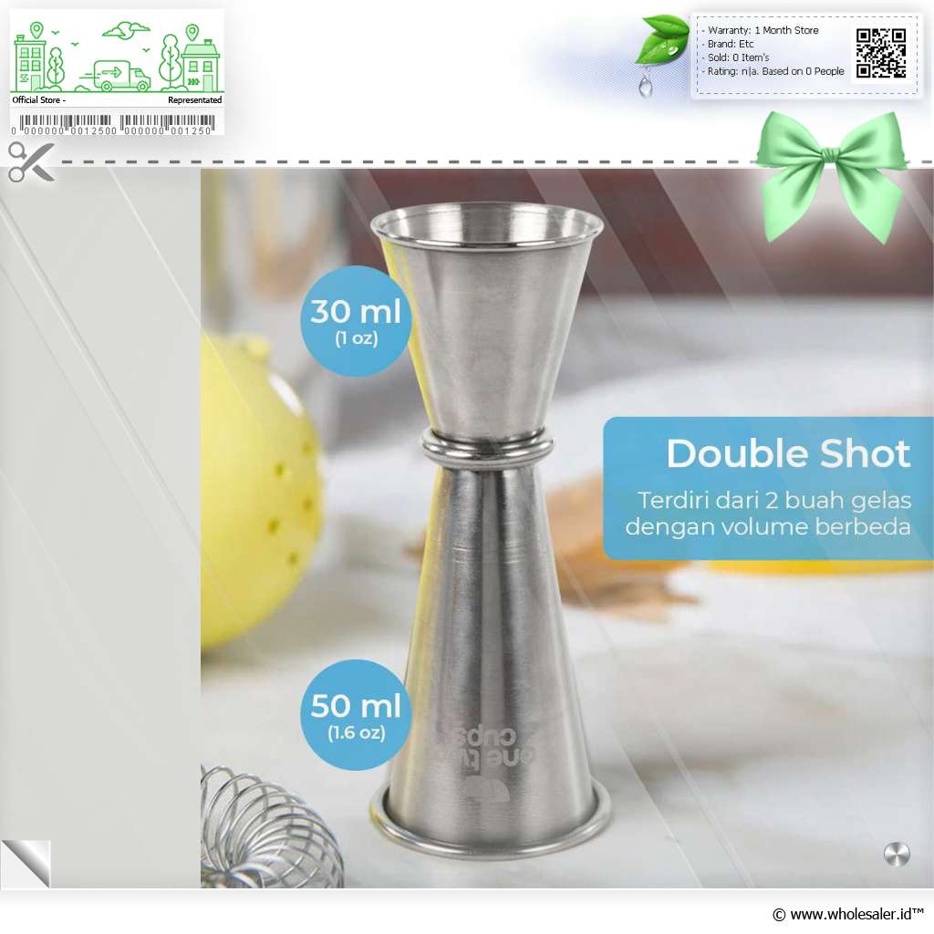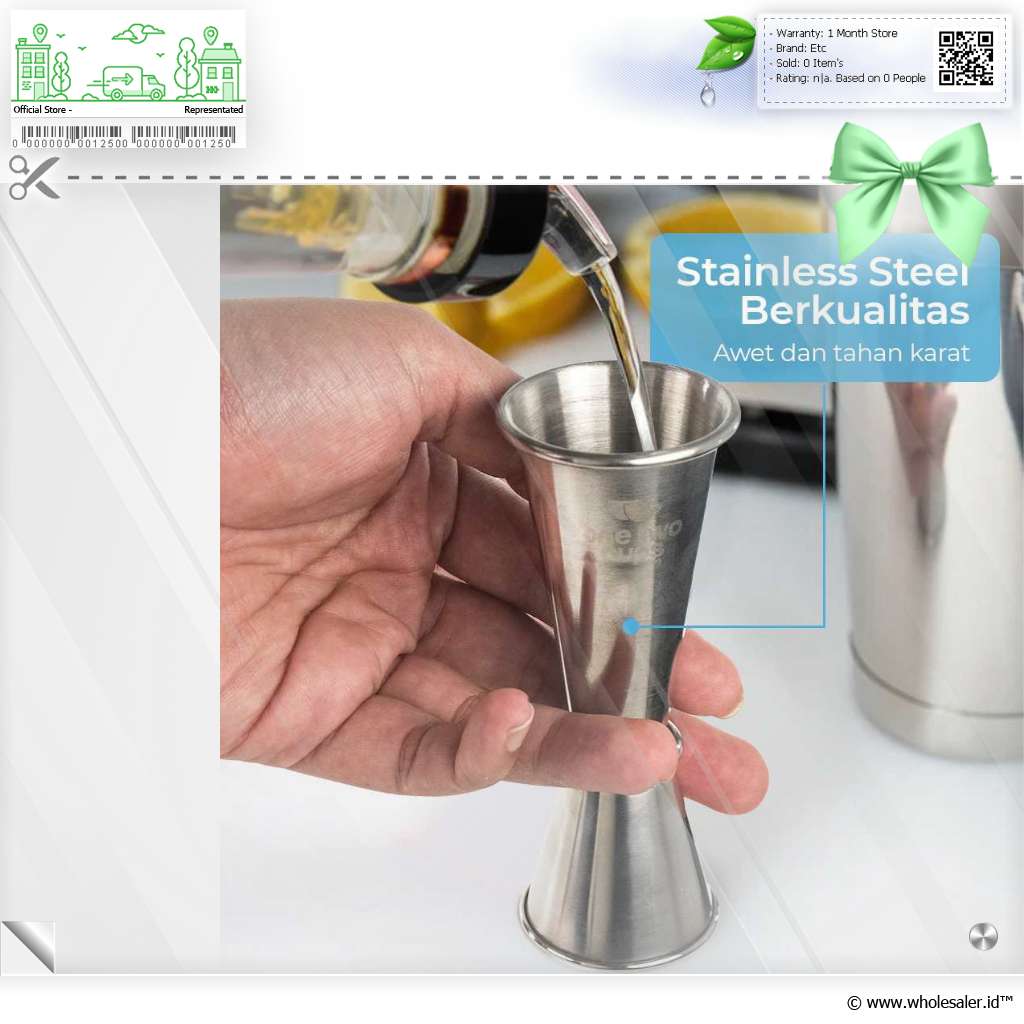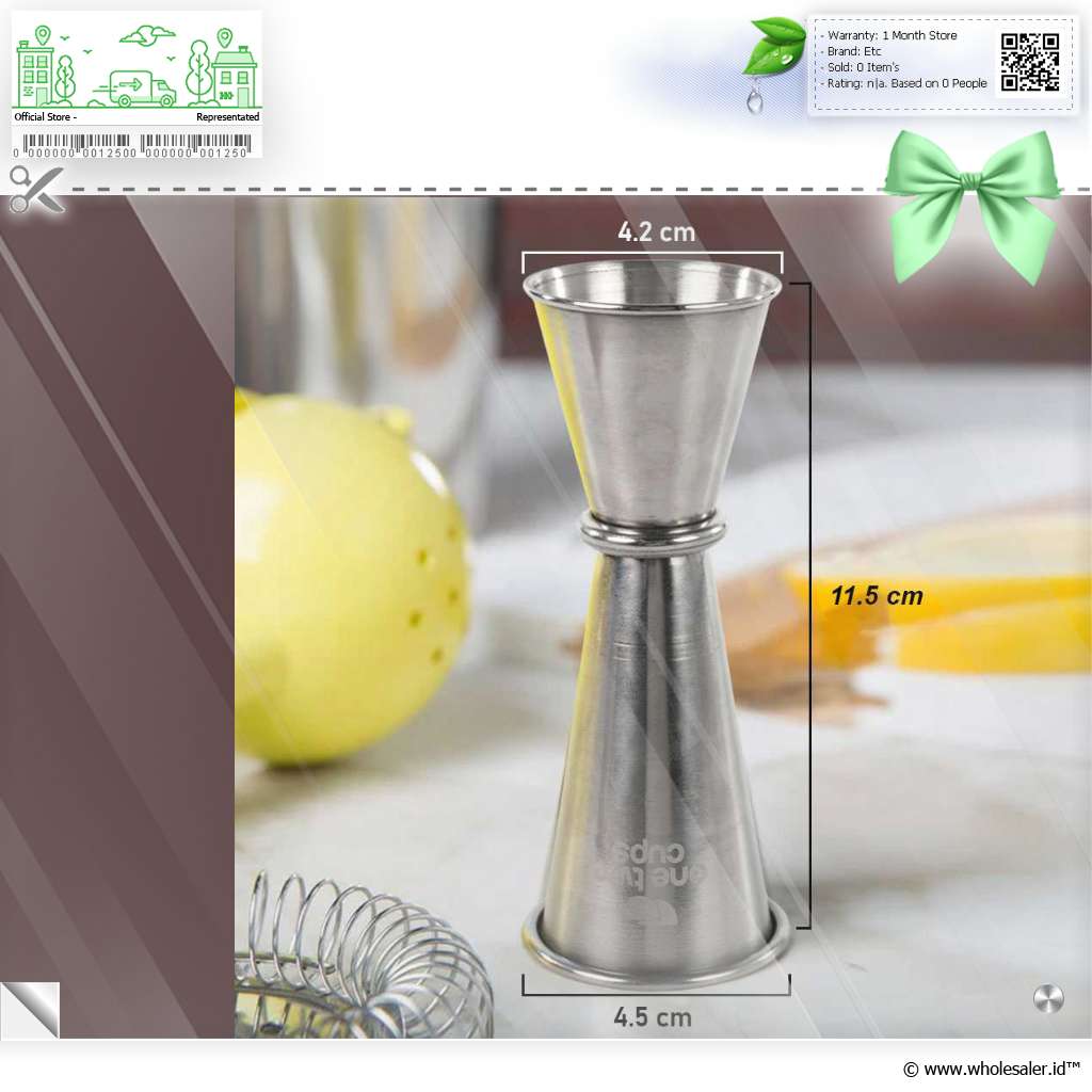 Gelas ukur jigger ini biasa digunakan para bartender untuk mengukur takaran campuran pada minuman. Terdiri dari 2 buah gelas yang menjadi satu kesatuan dengan volume berbeda. Terbuat dari bahan stainless steel yang tebal sehingga tidak gampang penyok dan juga tahan karat.