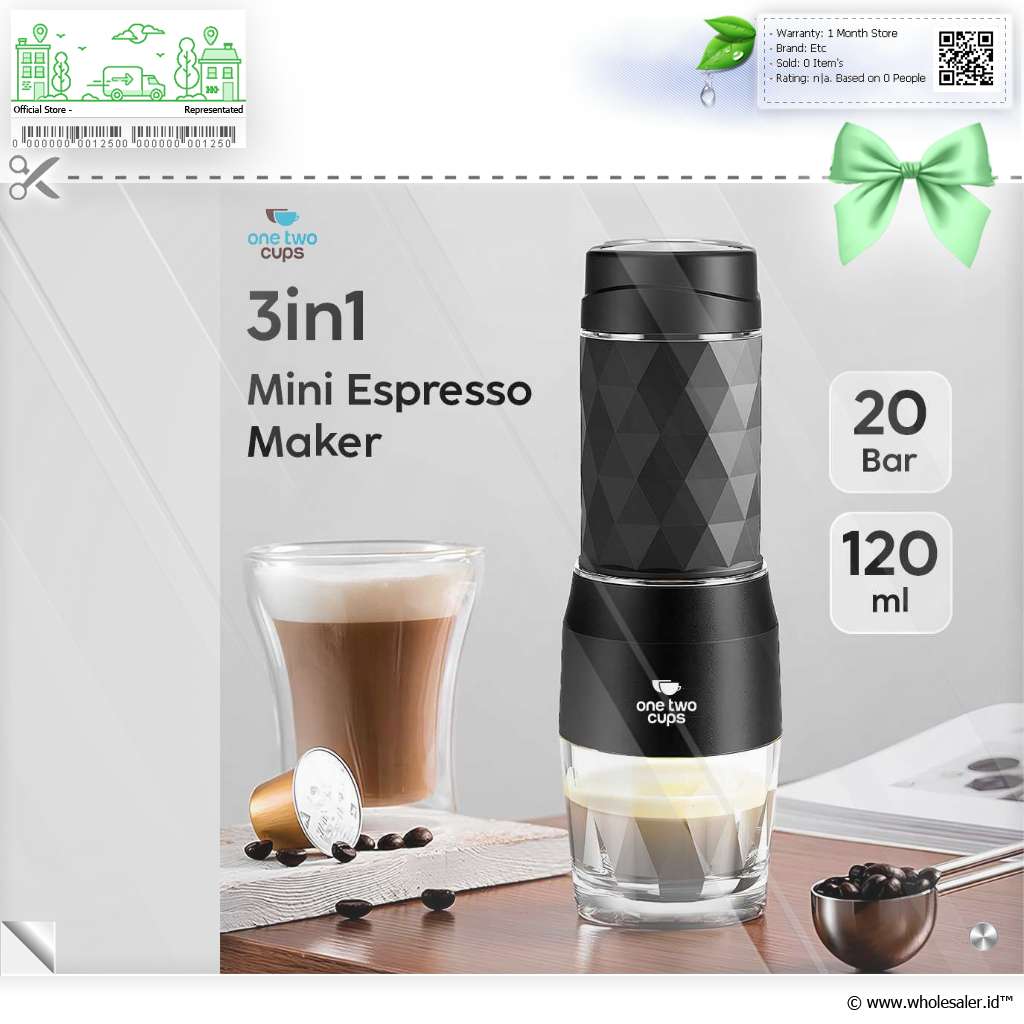 Nikmati espresso seperti buatan barista di mana saja menggunakan mini espresso maker dari One Two Cups. Mesin 20 bar hasilkan esresso yang pekat dan kaya rasa. Hadir sebagai produk 3in1, Anda bisa menggunakan espresso maker ini untuk mengekstrak aneka jenis kopi.