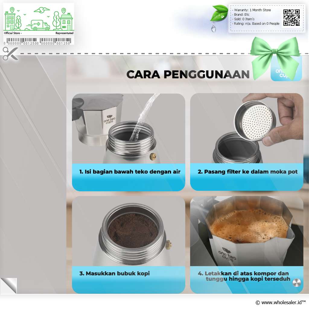 Informasi Produk One Two Cups Moka Pot Italian Espresso Coffee Maker Stainless Steel - W-767