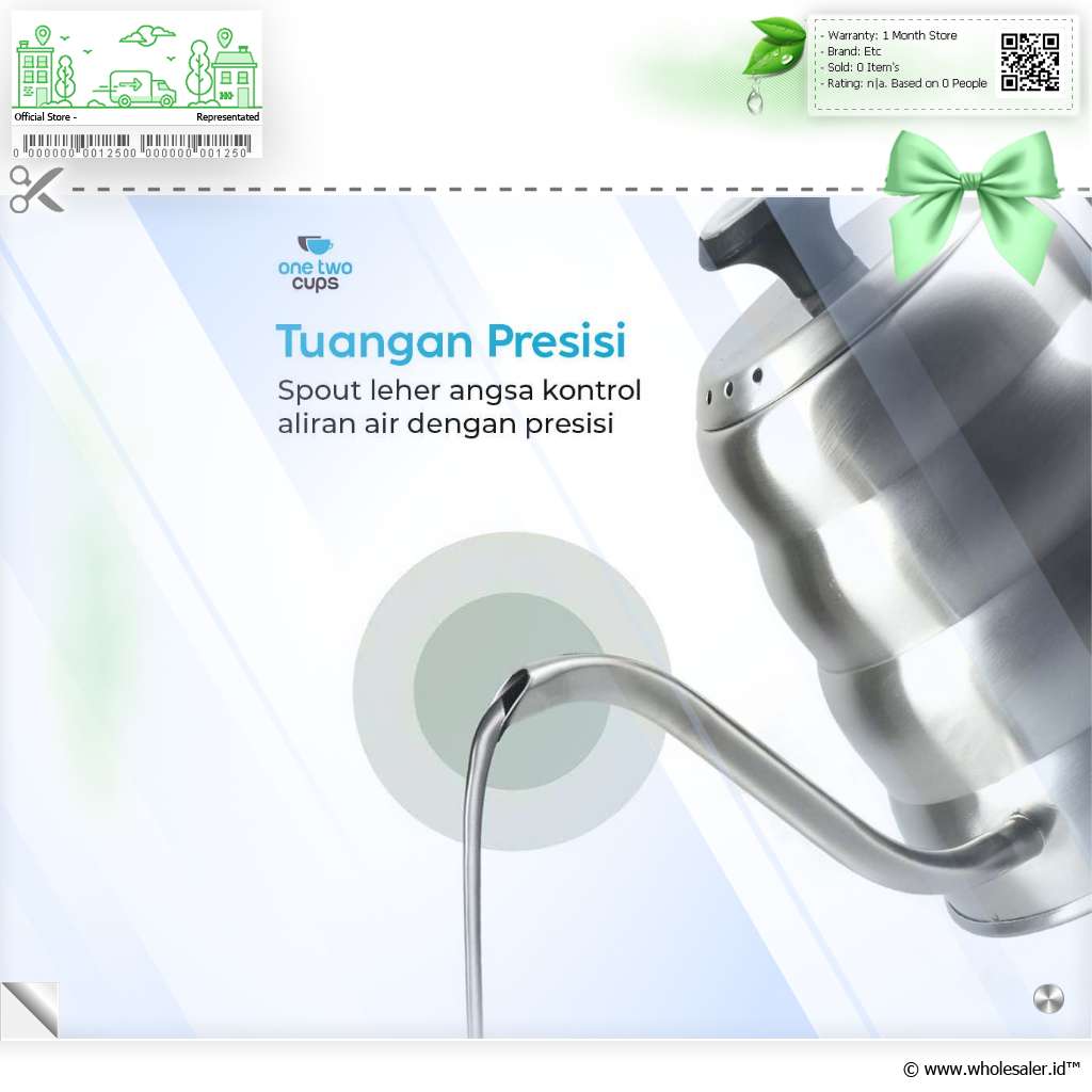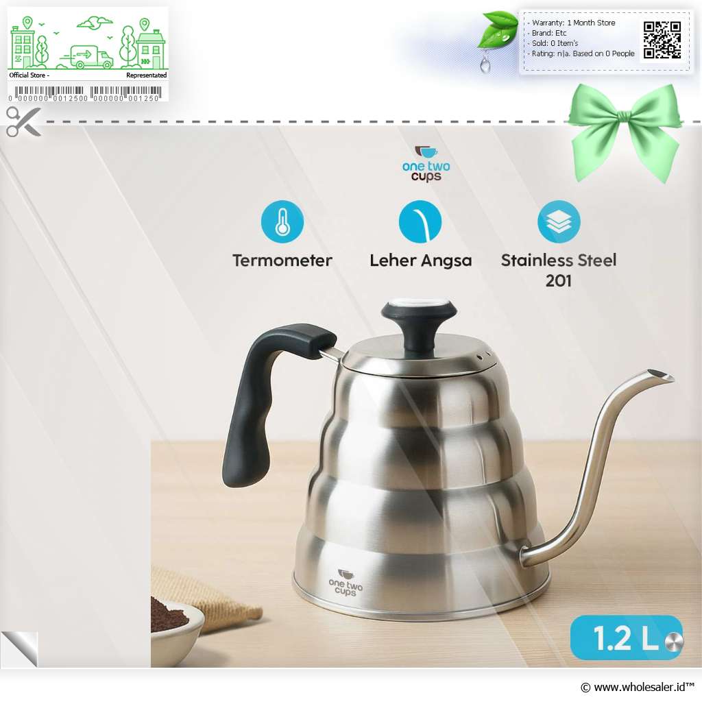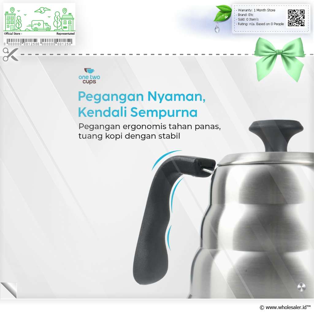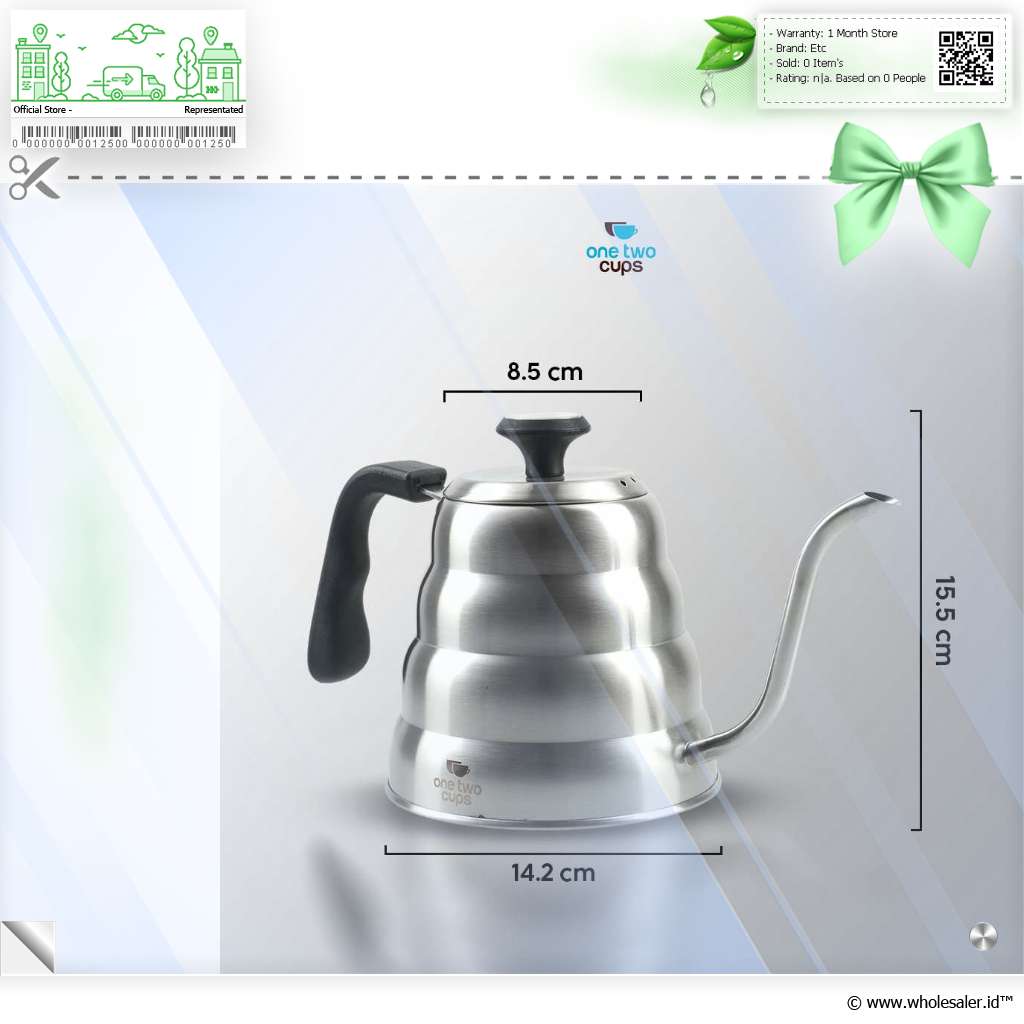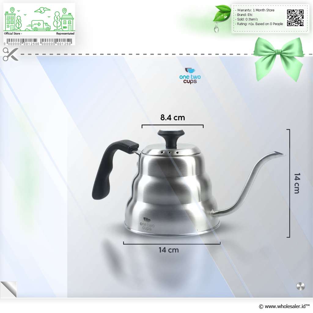 Seduh kopi dan minuman lainnya lebih praktis dengan teko kopi dari One Two Cups. Model leher angsa presisi cegah air tumpah saat dituang. Stainless steel 201 punya ketahanan suhu tinggi yang cocok untuk berbagai minuman.