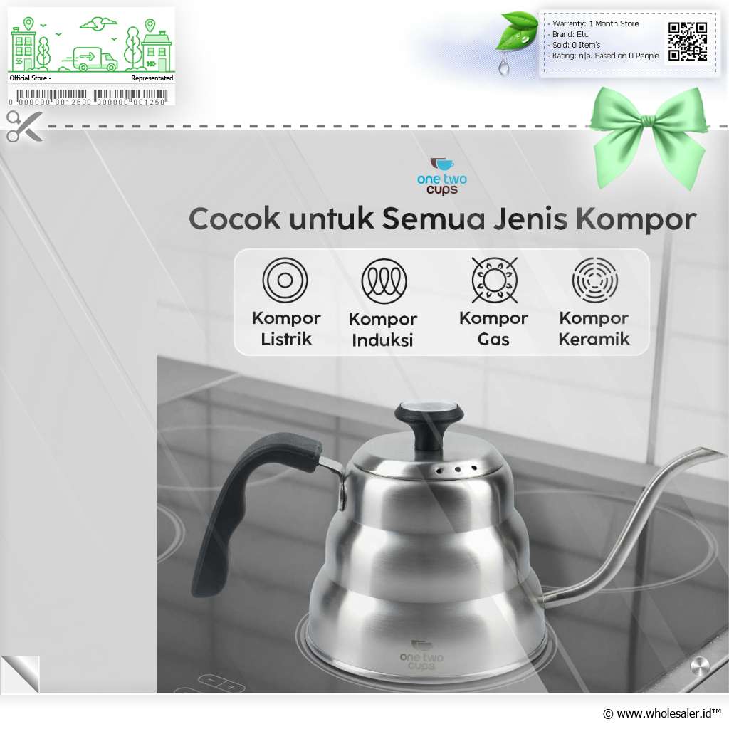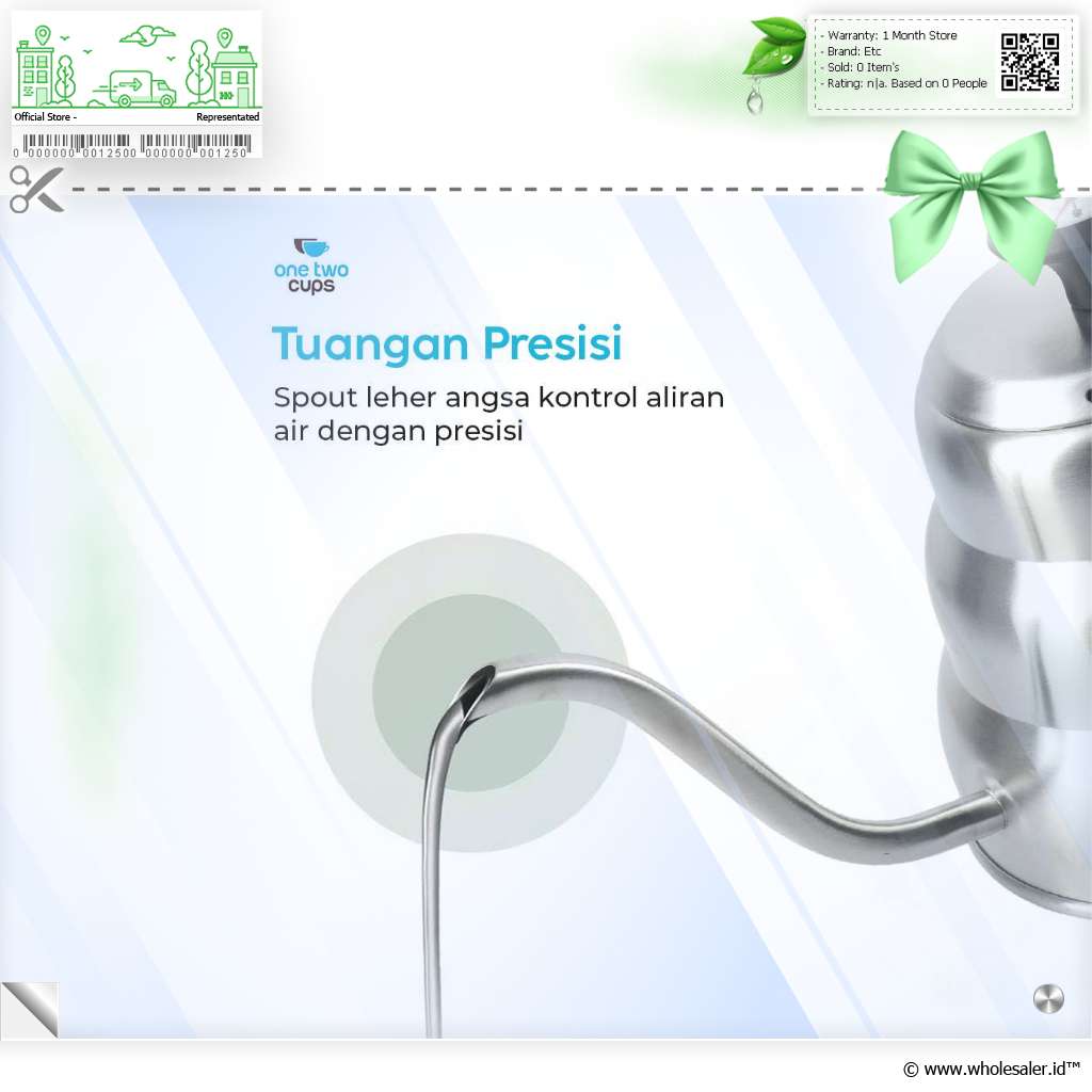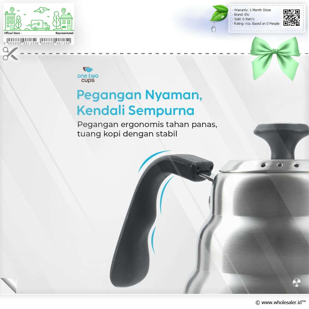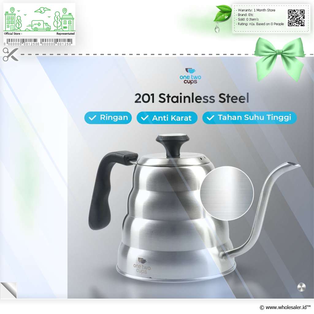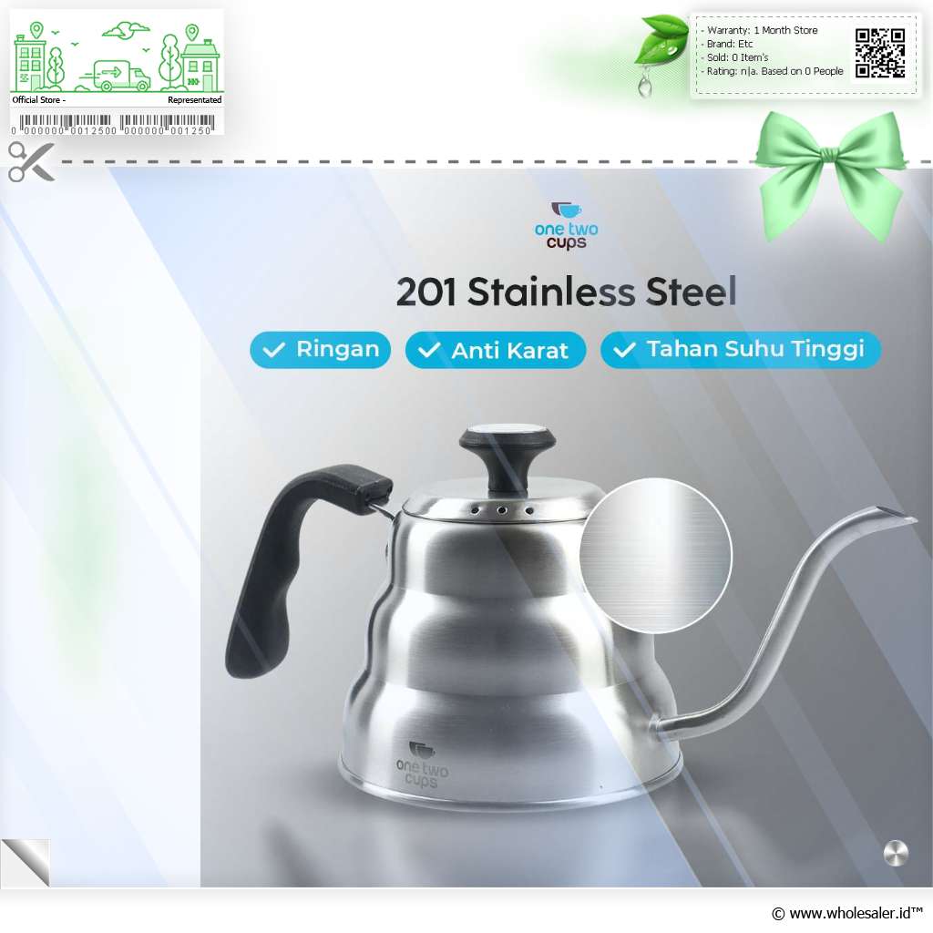 Seduh kopi dan minuman lainnya lebih praktis dengan teko kopi dari One Two Cups. Model leher angsa presisi cegah air tumpah saat dituang. Stainless steel 201 punya ketahanan suhu tinggi yang cocok untuk berbagai minuman.