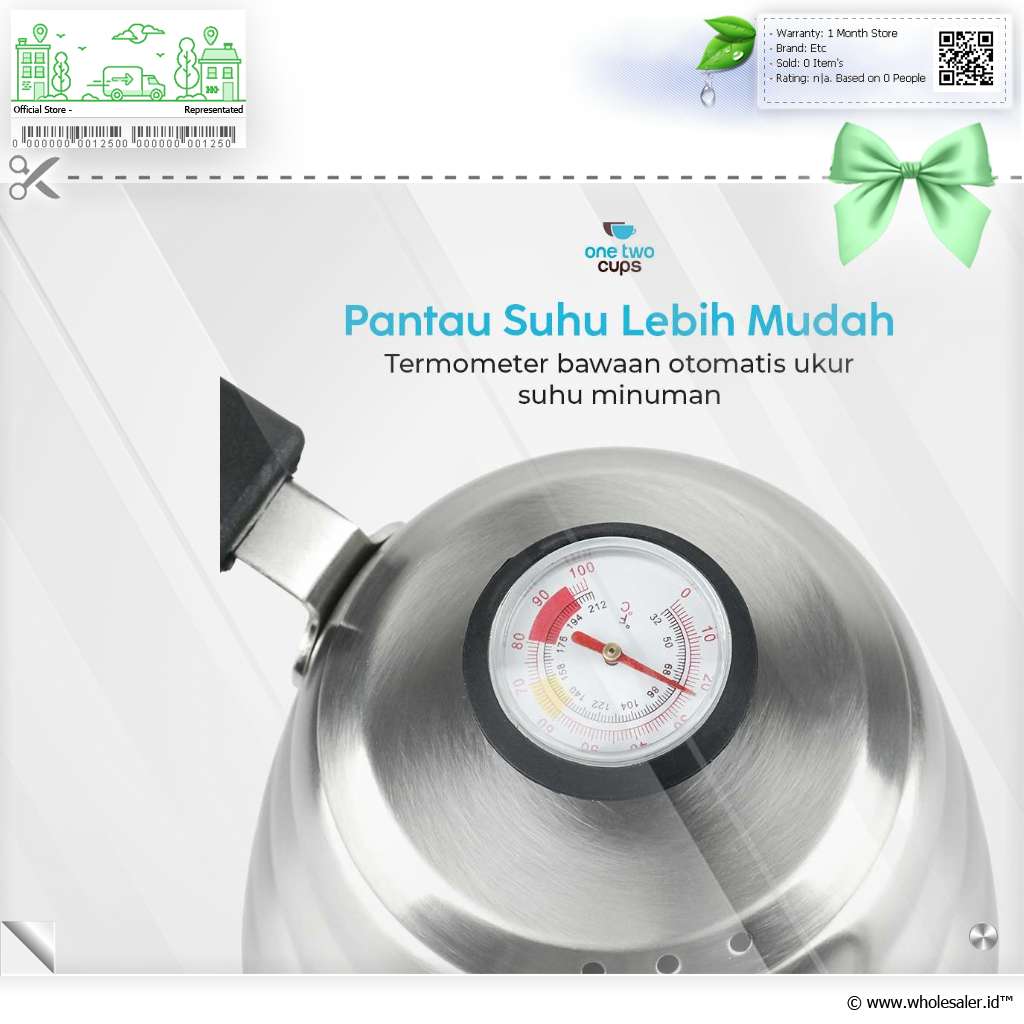 - 1 x One Two Cups Teko Kopi Leher Angsa Gooseneck Pour Over Thermometer - OTC201