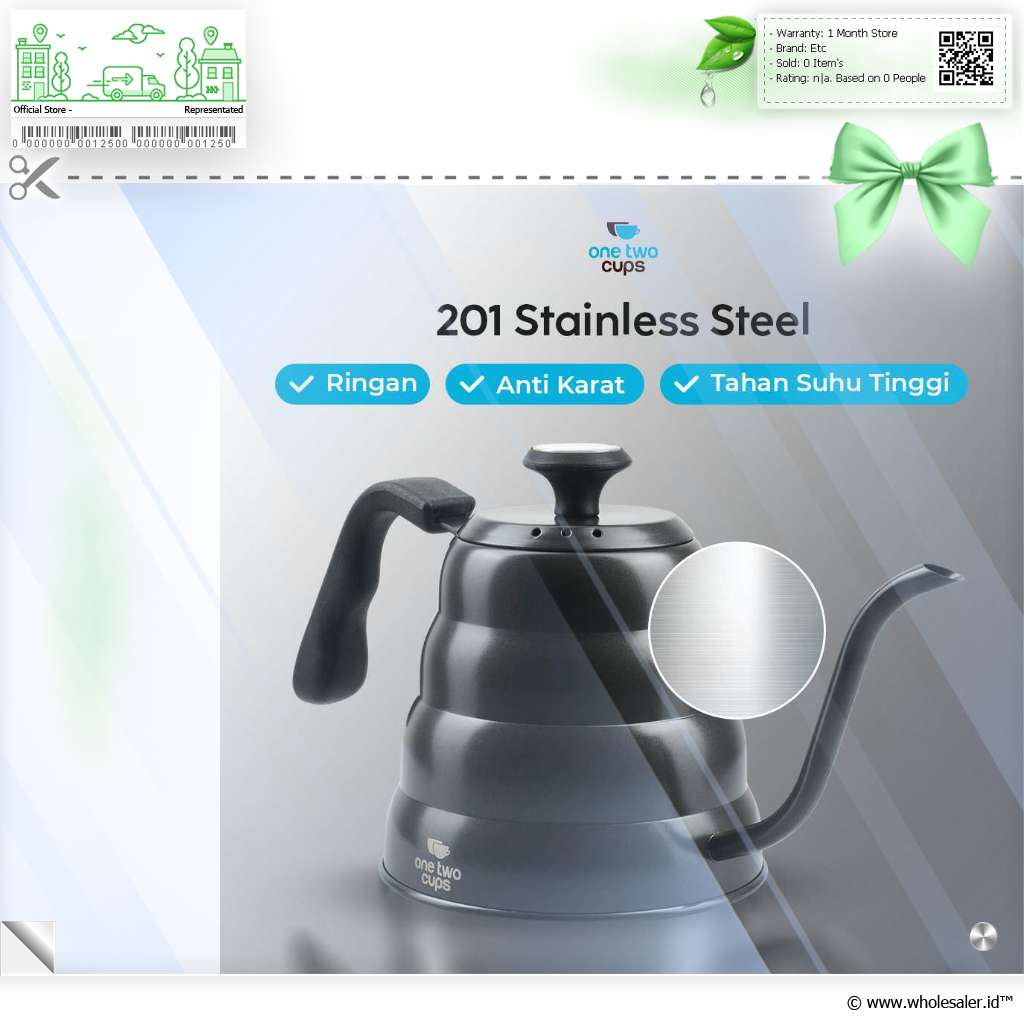 Seduh kopi dan minuman lainnya lebih praktis dengan teko kopi dari One Two Cups. Model leher angsa presisi cegah air tumpah saat dituang. Stainless steel 201 punya ketahanan suhu tinggi yang cocok untuk berbagai minuman.