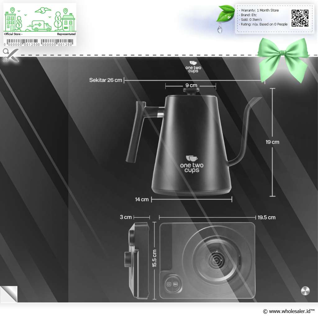 Informasi Produk One Two Cups Teko Listrik Kopi Pemanas Air Leher Angsa 1200W 1L - KT10 PRO