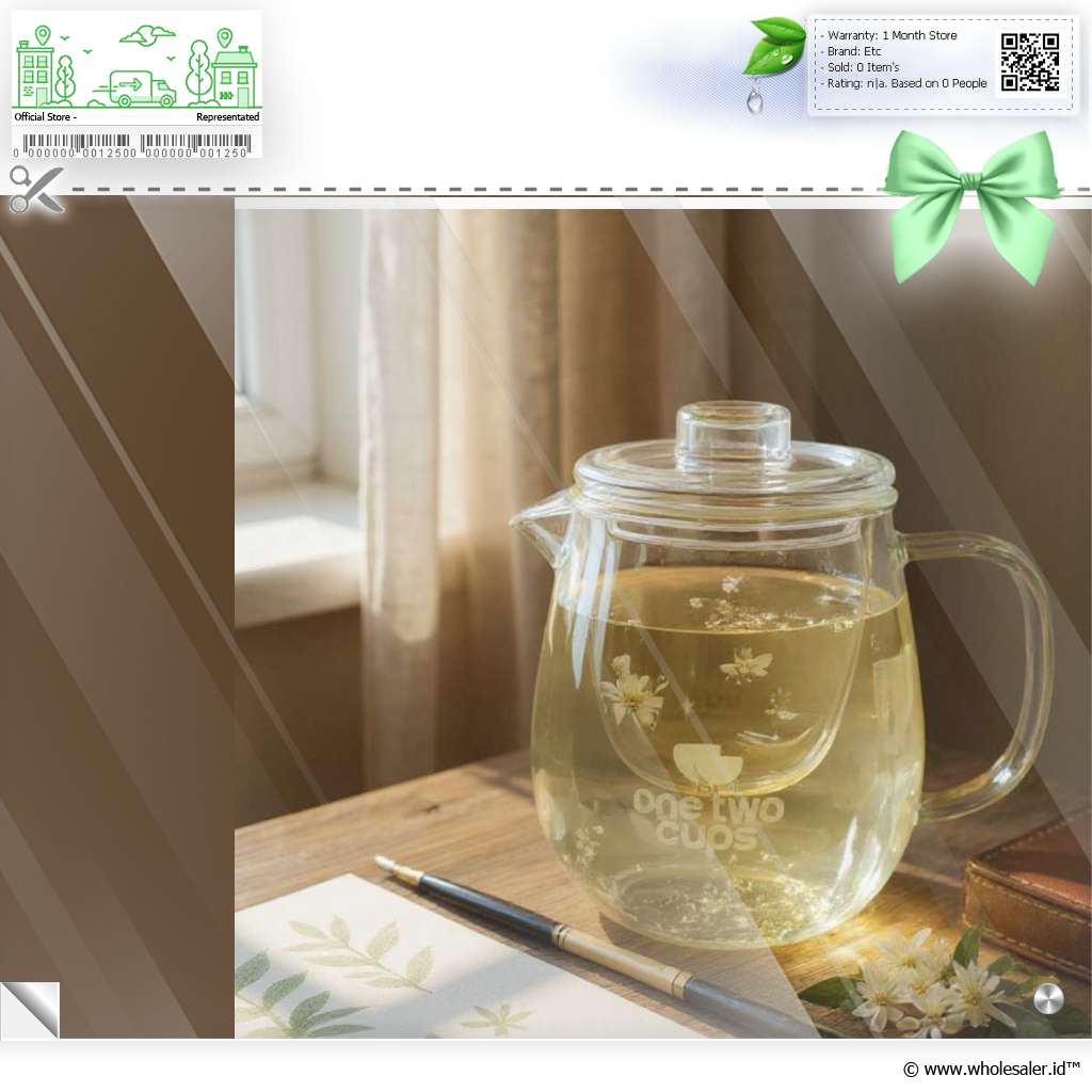 - 1 x One Two Cups Teko Teh Kaca Saringan Tahan Panas Api Infuser Teapot - K77