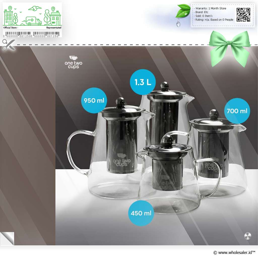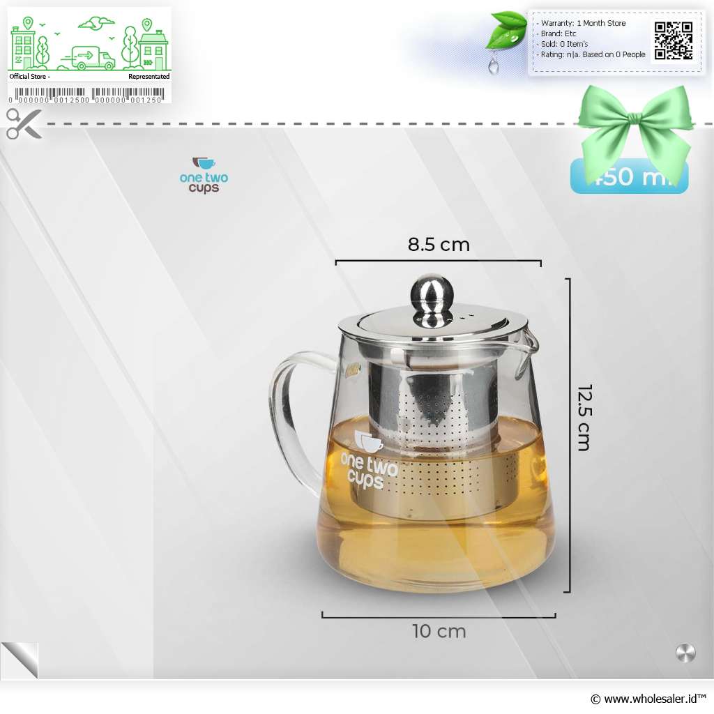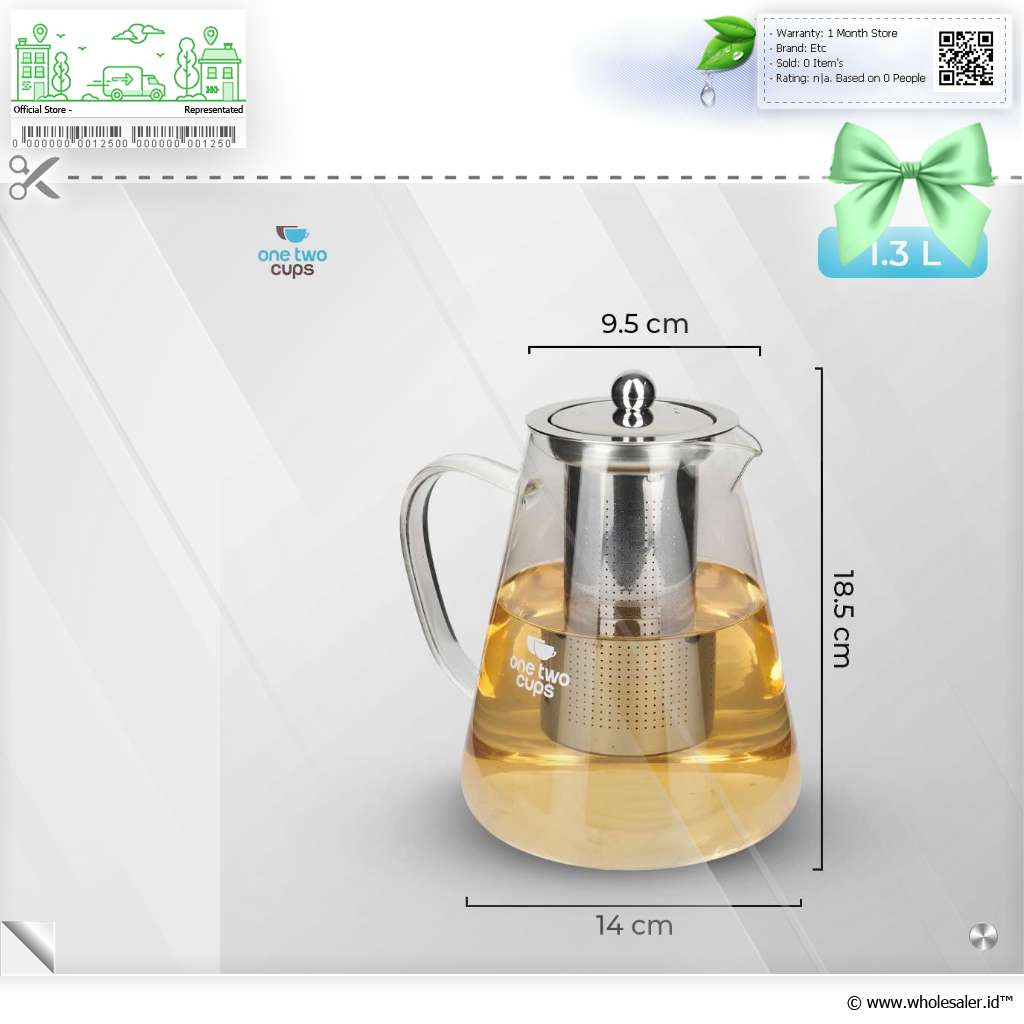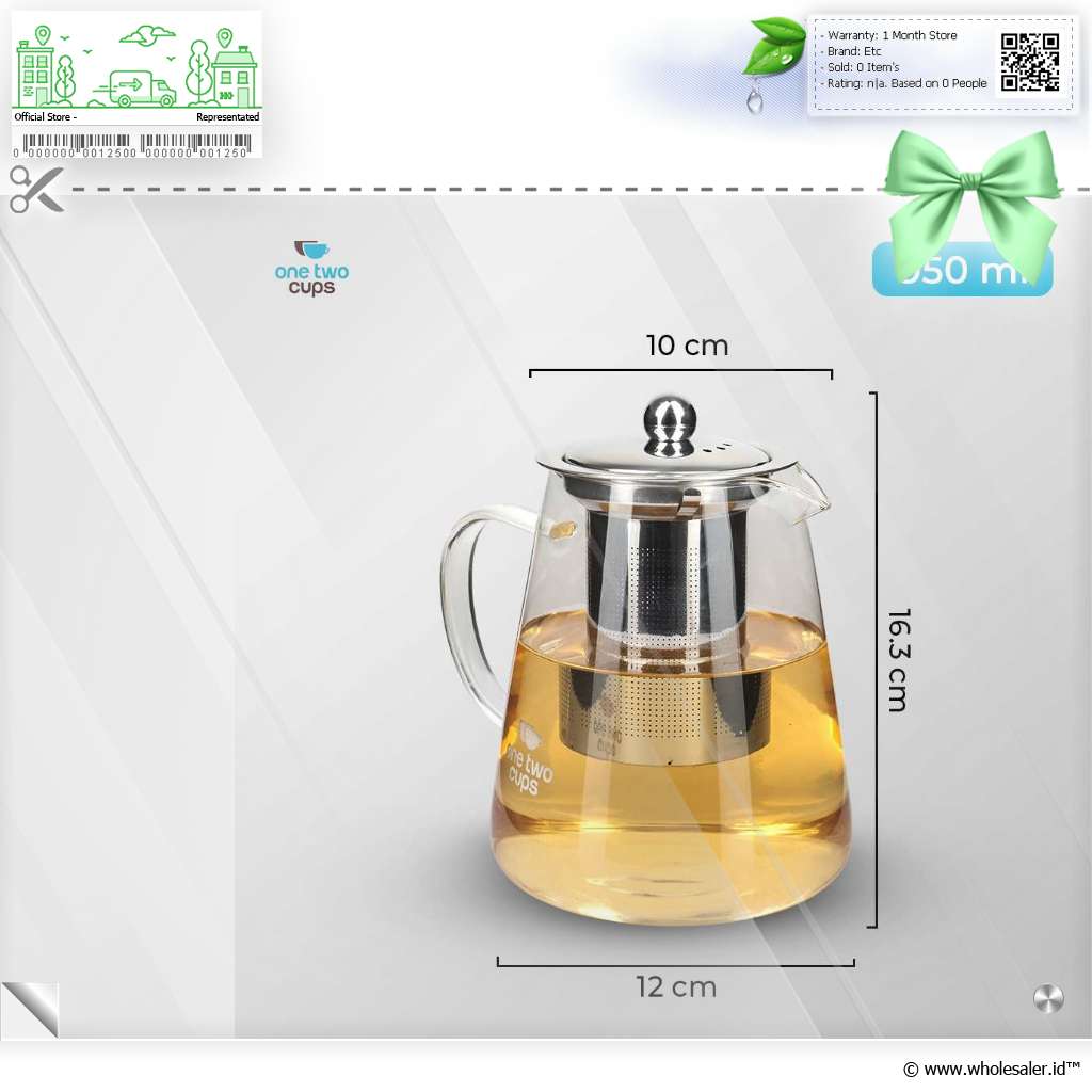 Informasi Produk One Two Cups Teko Teh Kaca Saringan Tahan Panas Api Infuser Teapot - TP-760