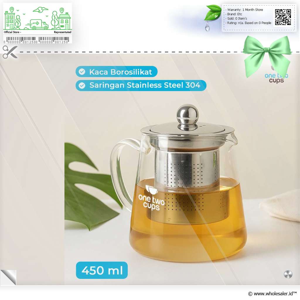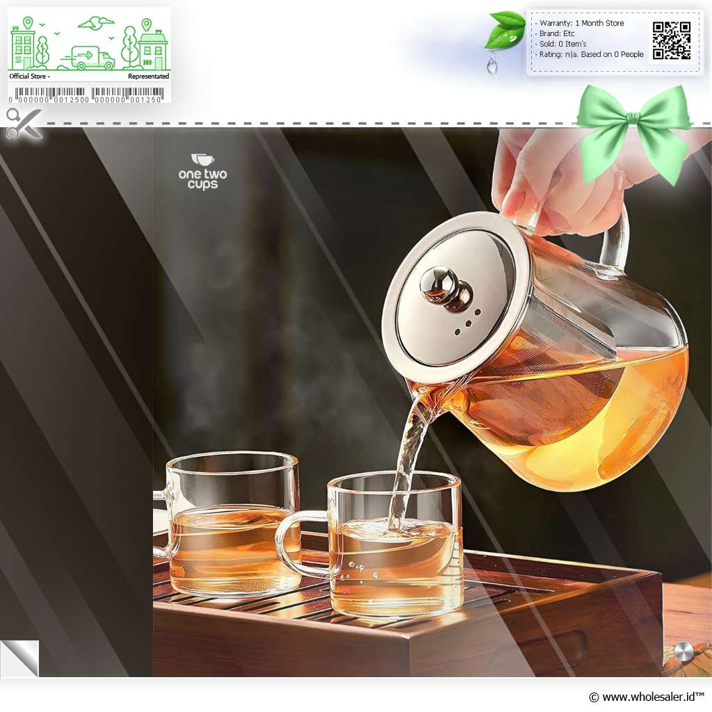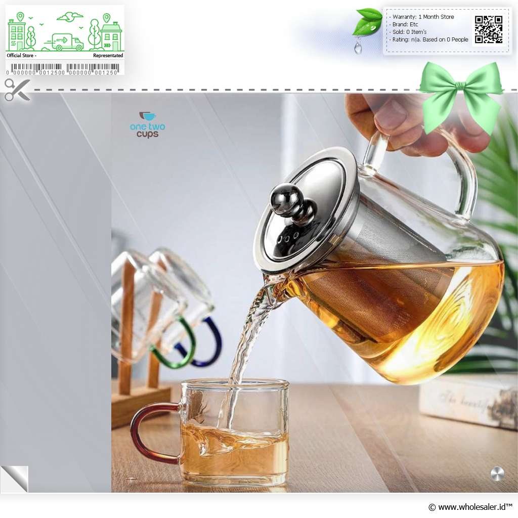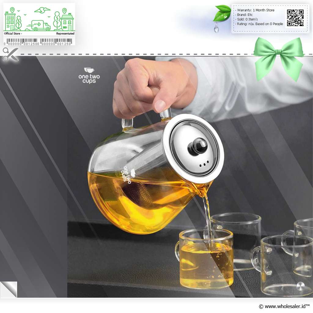 - 1 x One Two Cups Teko Teh Kaca Saringan Tahan Panas Api Infuser Teapot - TP-760