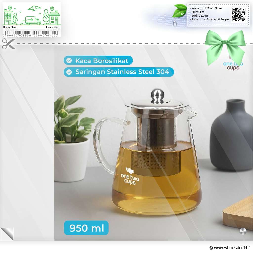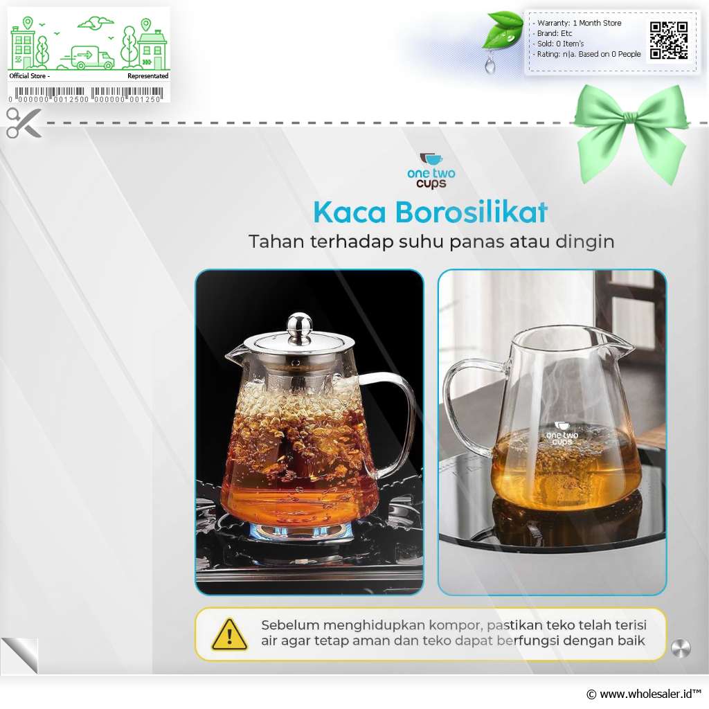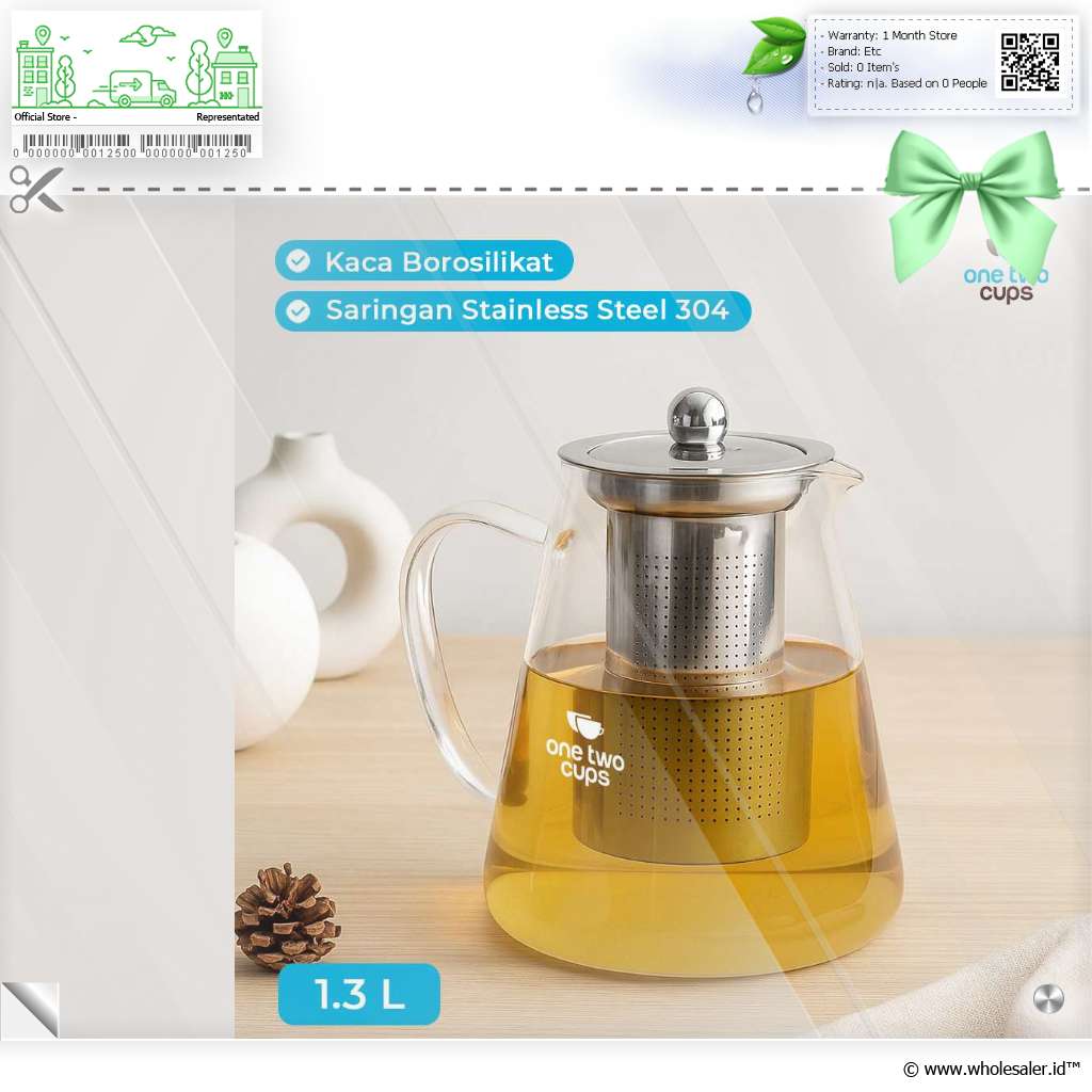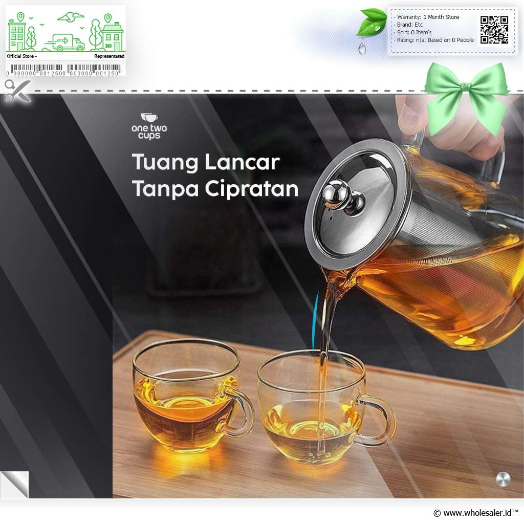 - 1 x One Two Cups Teko Teh Kaca Saringan Tahan Panas Api Infuser Teapot - TP-760