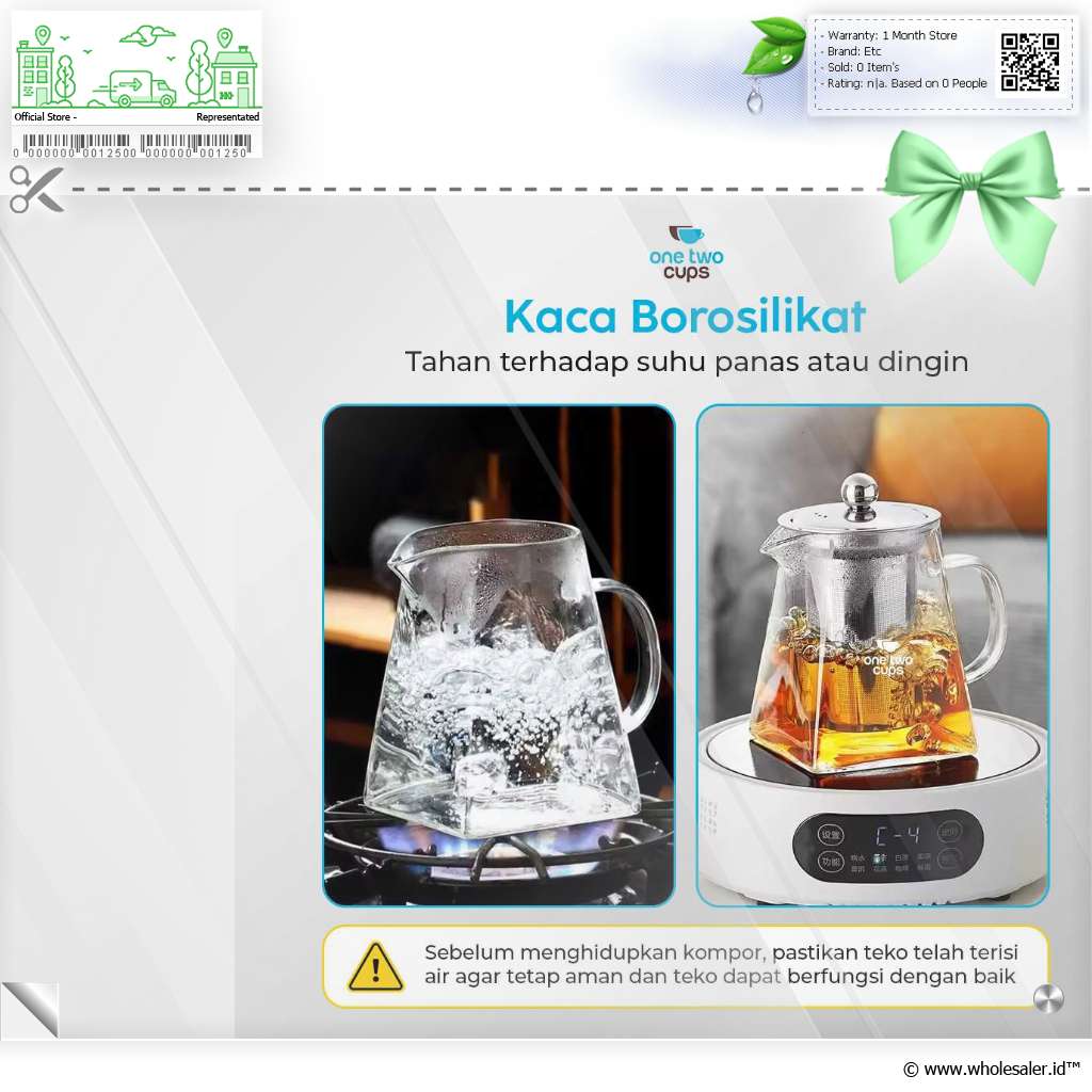 - 1 x One Two Cups Teko Teh Kaca Saringan Tahan Panas Api Infuser Teapot - TP-761