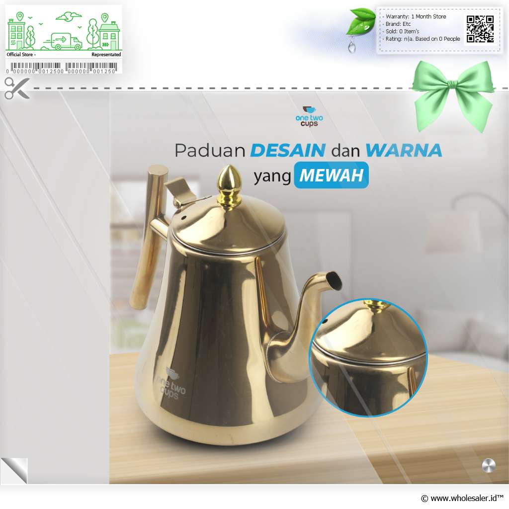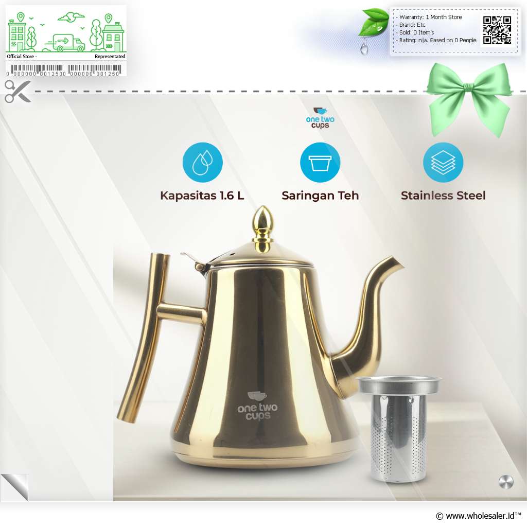 - 1 x One Two Cups Teko Teh Stainless Steel Saringan Teapot 1.6L - HS4012