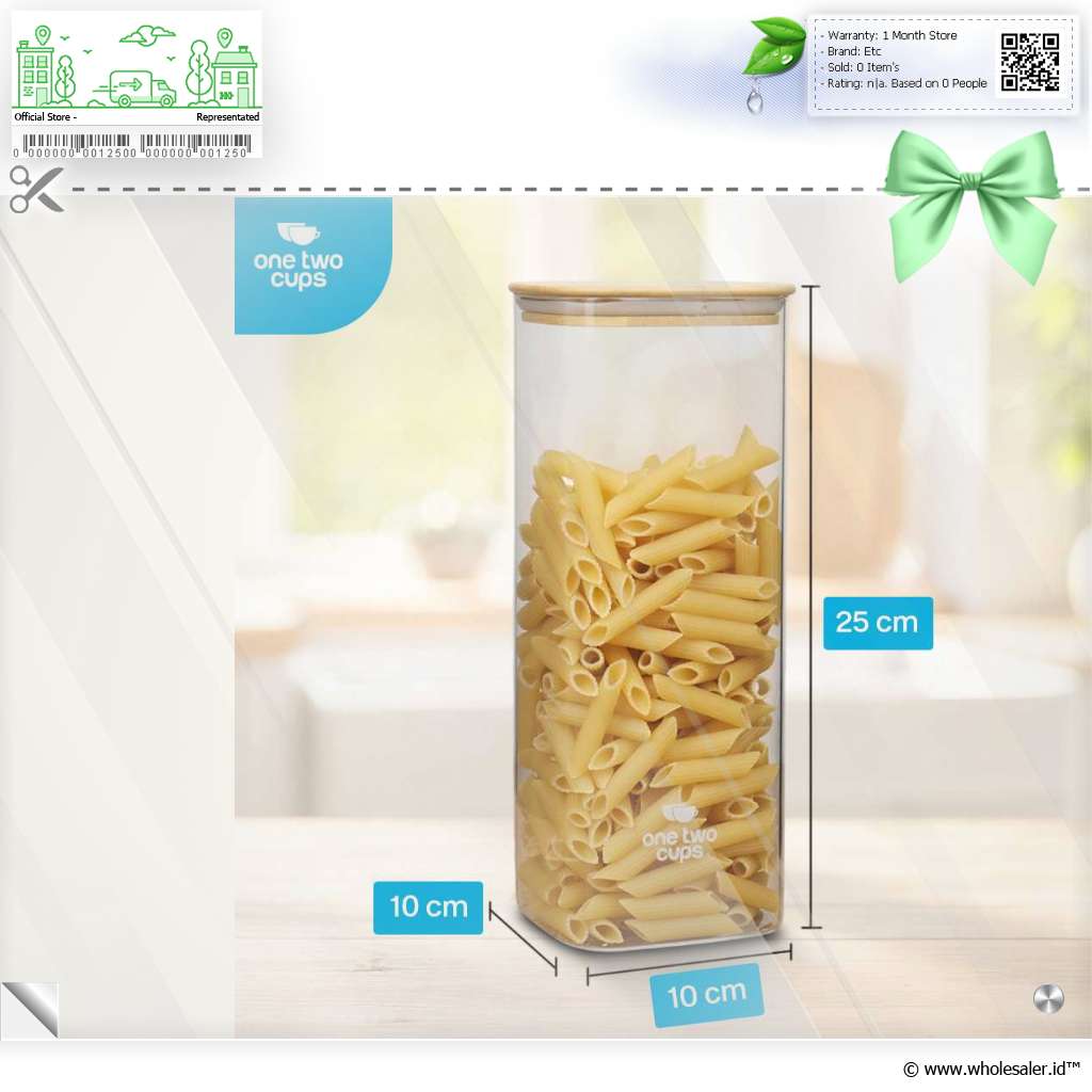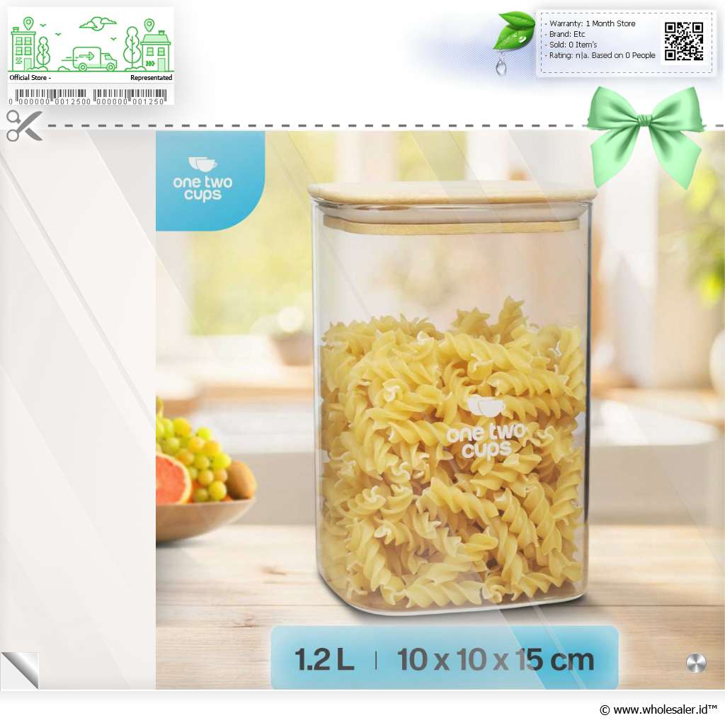 Informasi Produk One Two Cups Toples Kaca Penyimpanan Makanan Kedap Udara Storage Jar - HC1019