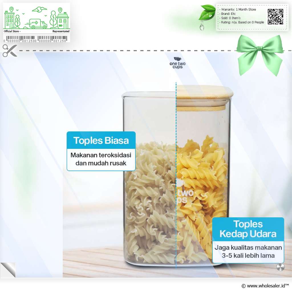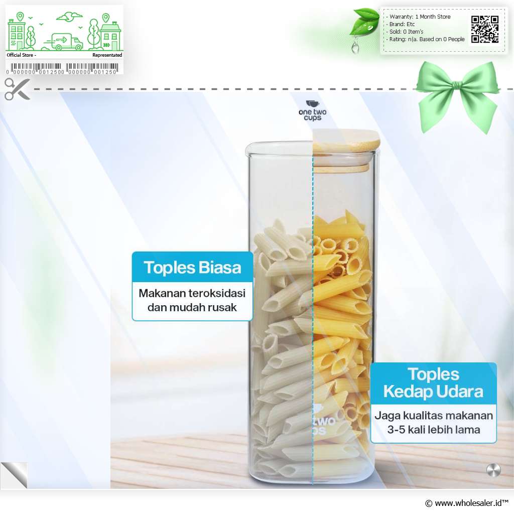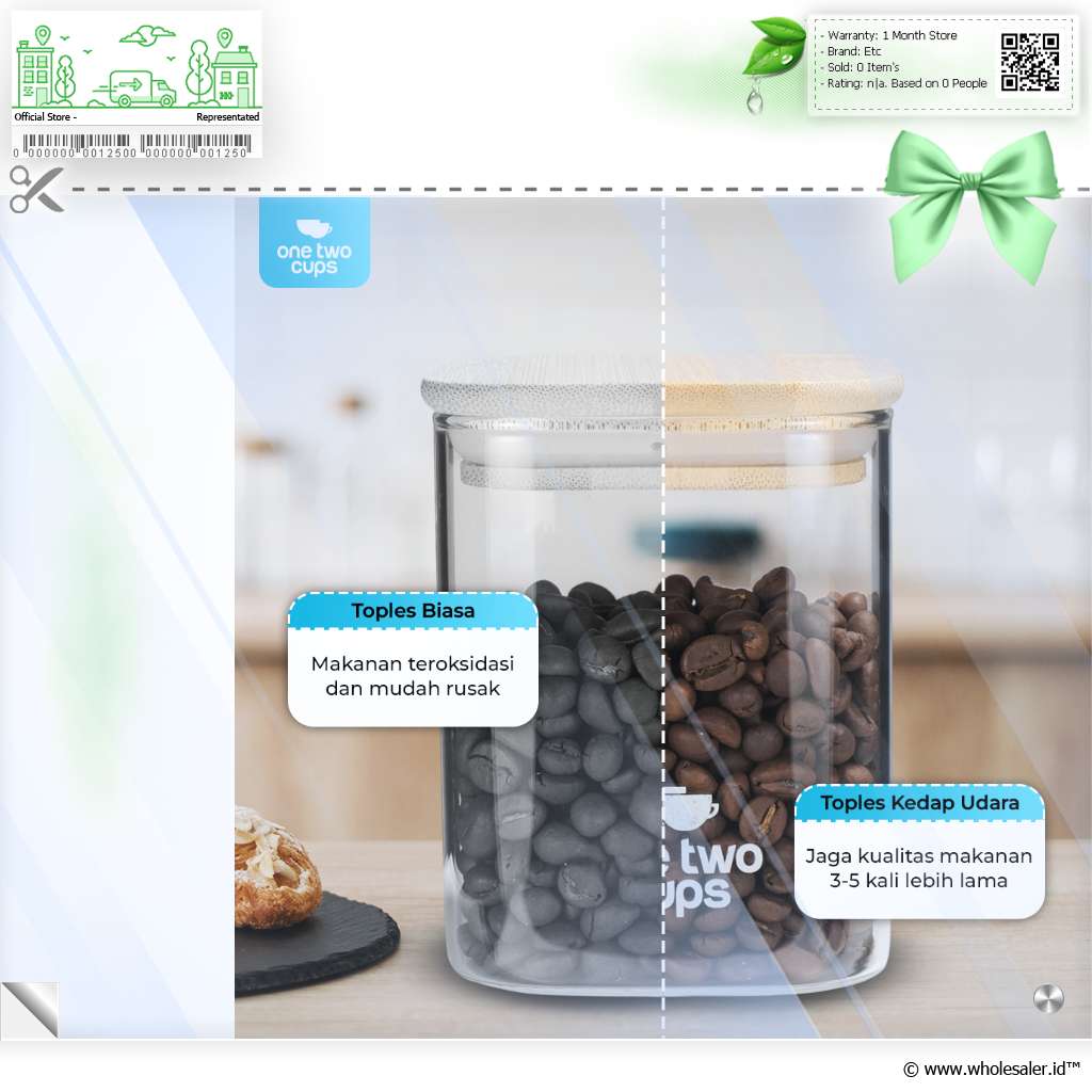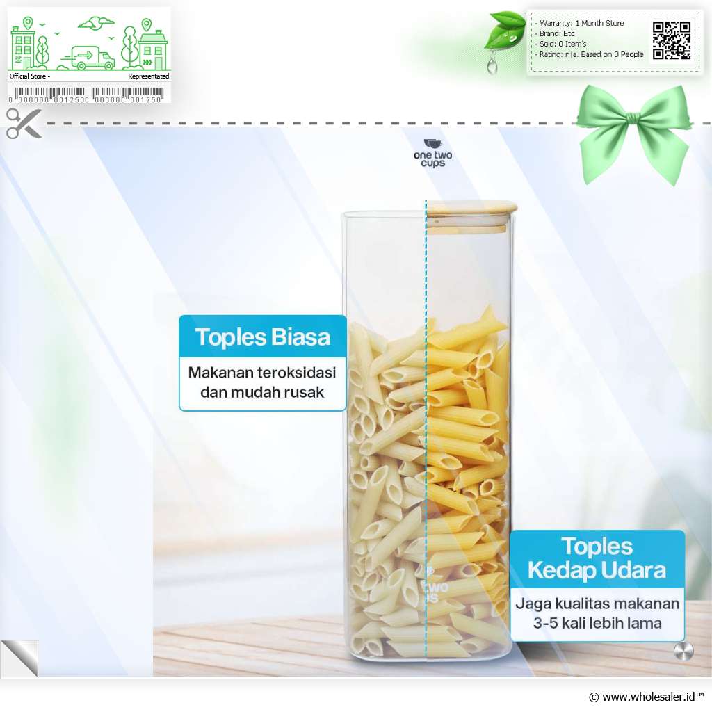 Jaga makanan favorit Anda tetap fresh dan renyah dengan toples kaca dari One Two Cups. Terbuat dari kaca borosilikat dengan segel kedap udara, toples ini kokoh dan tebal yang cocok untuk menyimpan camilan, biji kopi, hingga bahan makanan. Desain minimalis cocok untuk melengkapi dekorasi area dapur, pantry, hingga ruang tamu.