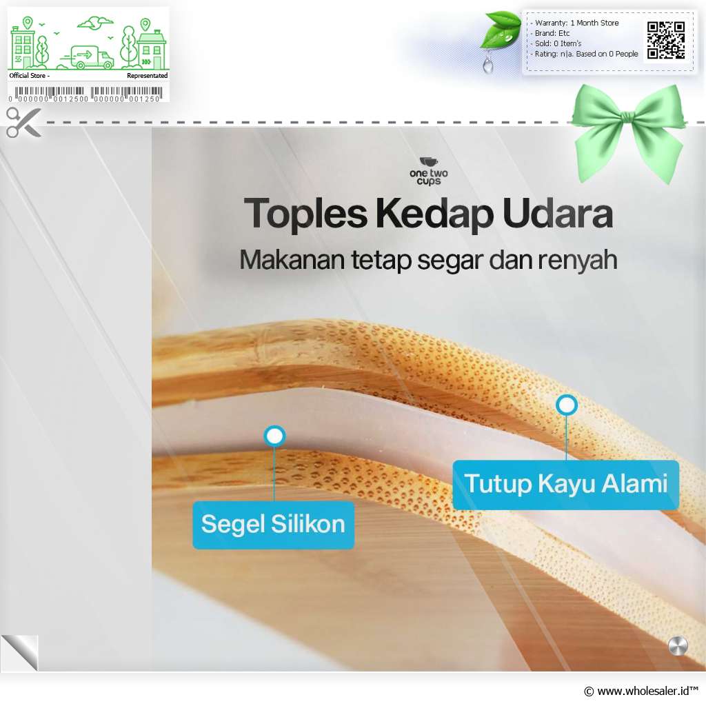 | Material | : | Bodi Toples Kaca Borosilikat Tutup Toples Kayu dan Karet Silikon |