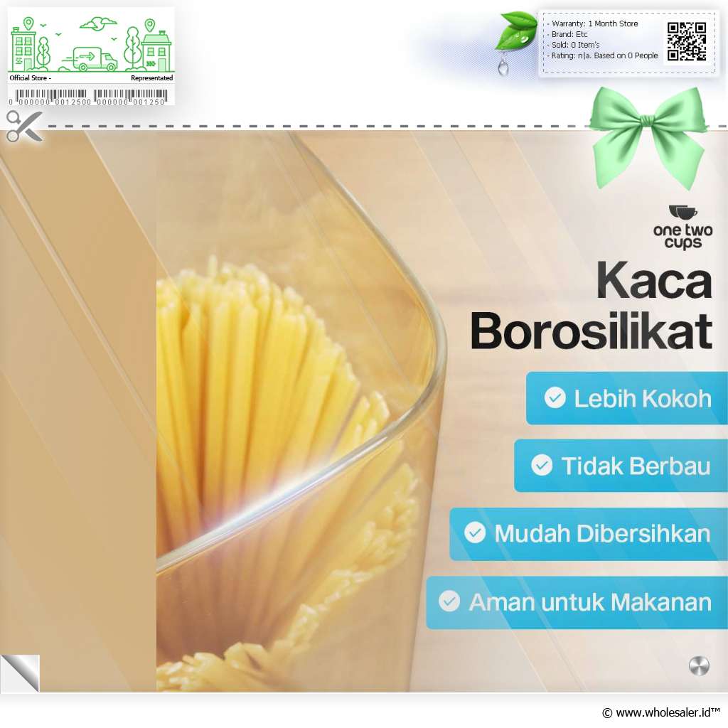 | Tebal dan Kokoh Terbuat dari kaca borosilikat, toples ini tebal, kokoh, dan tahan dengan perubahan suhu. Karakter ini membuat toples dapat menjaga kondisi makanan dalam jangka lama tanpa terpengaruh suhu lingkungan. |