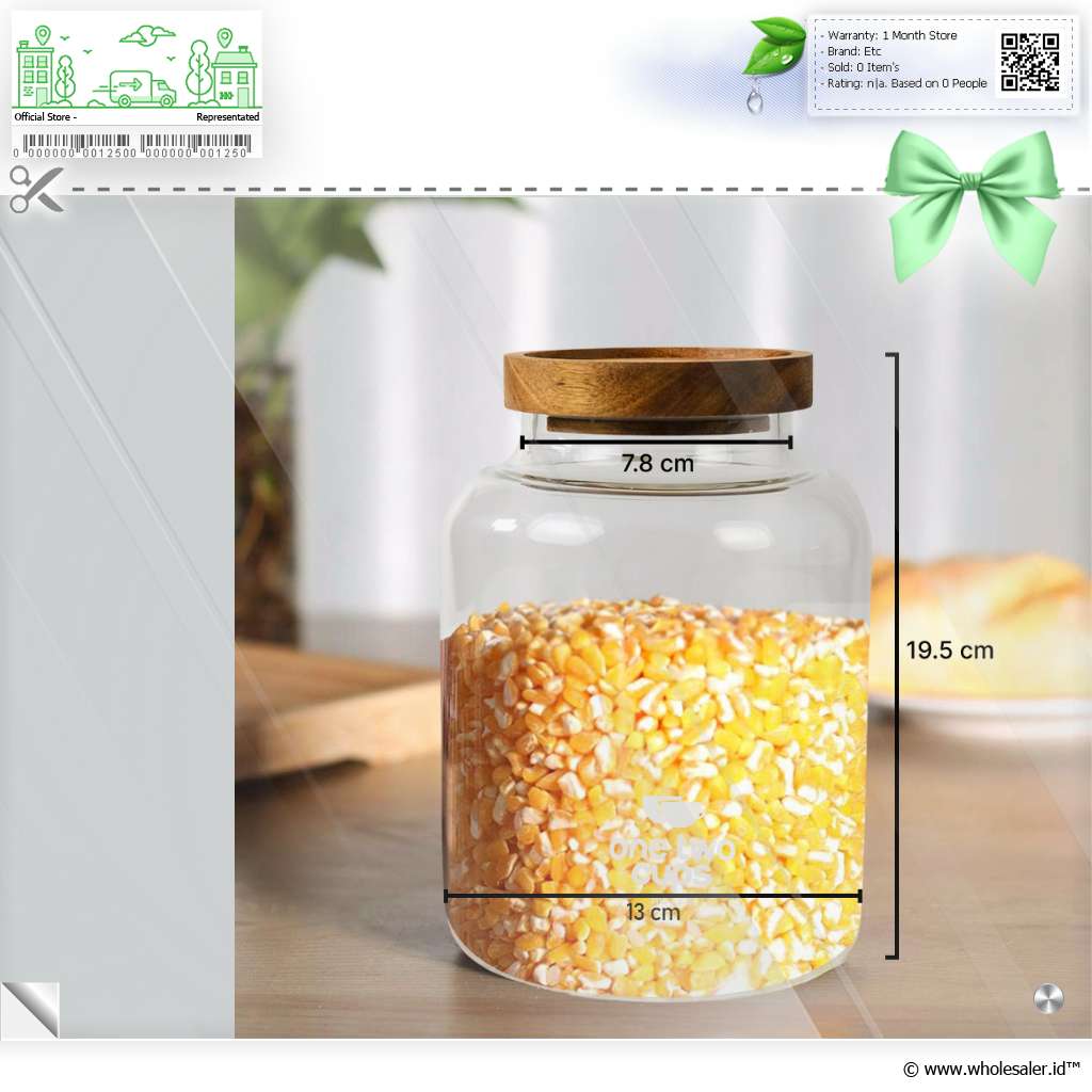 | Material | : | Bodi Toples Kaca Borosilikat Tutup Toples Kayu Akasia dan Seal Silikon |