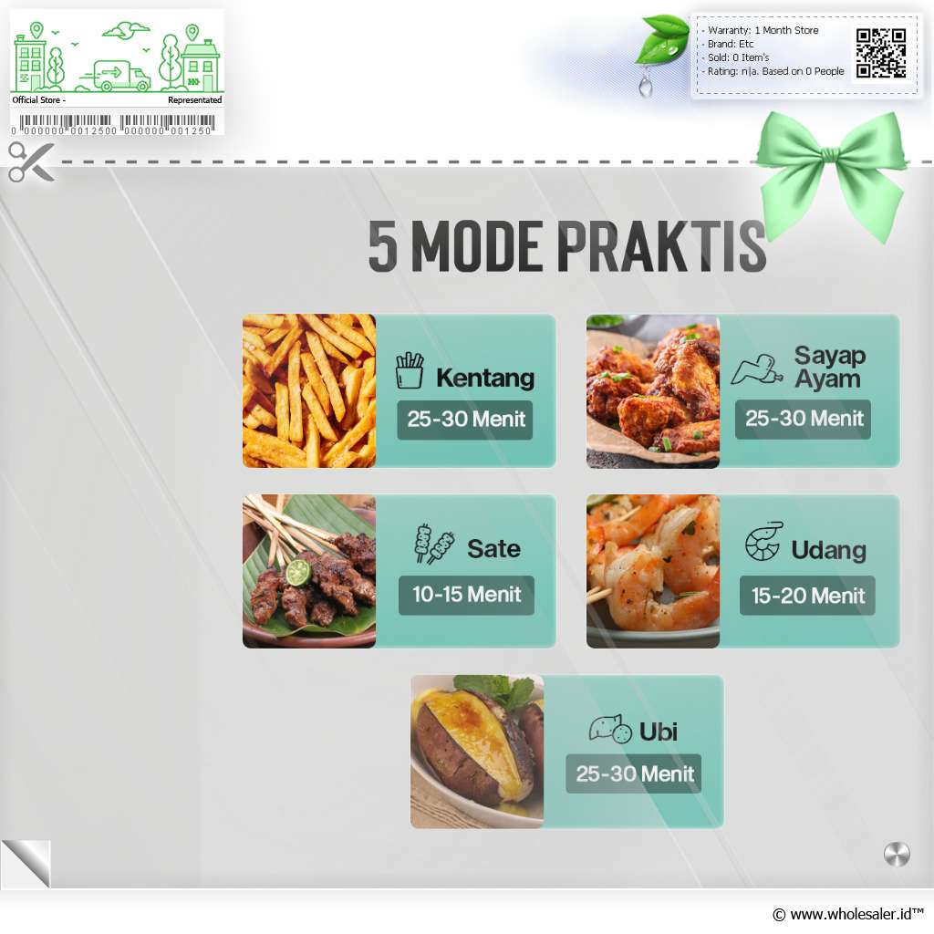 5 Mode Praktis Masak aneka hidangan lebih praktis dengan 5 mode penggunaan yang bisa dipilih sesuai kebutuhan. Cukup 1x klik tanpa repot atur waktu penggunaan secara manual. |