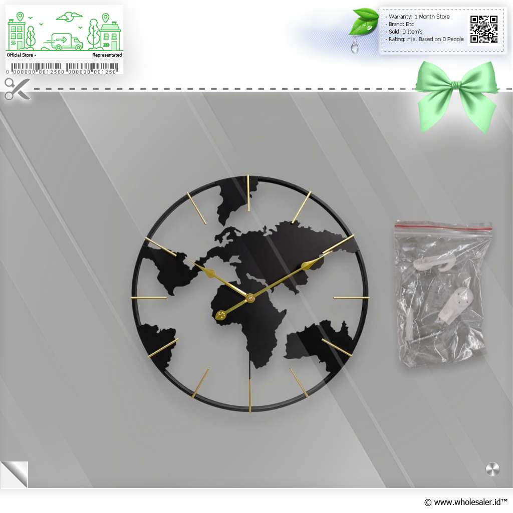 Jam dinding globe elegan dengan mesin presisi, gerakan senyap, desain estetik, material besi kokoh, dan mudah dipasang.