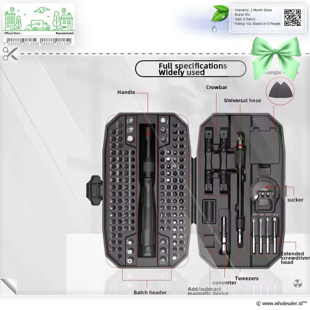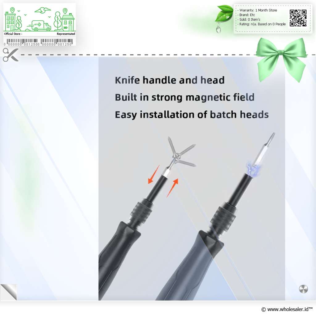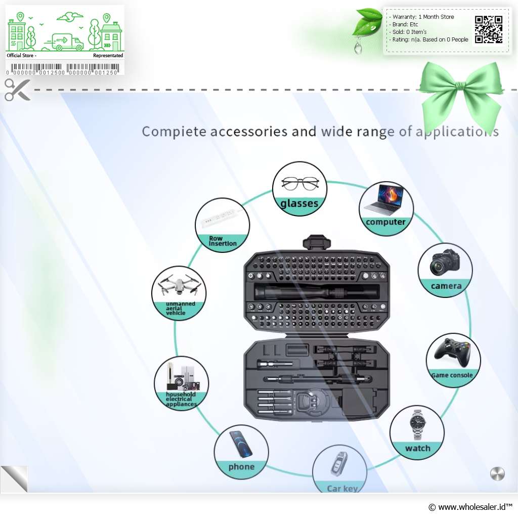 | 152 Mata Obeng Set ini berisi 152 mata obeng yang berbeda jenisnya, mulai dari ukuran sangat kecil hingga ukuran menengah, sehingga sangat praktis untuk berbagai tugas pemeliharaan dan perbaikan elektronik. Anda tidak perlu lagi membeli mata obeng tambahan satu per satu karena dengan satu paket Anda sudah dilengkapi untuk menangani laptop, smartphone, drone, bahkan kacamata. |