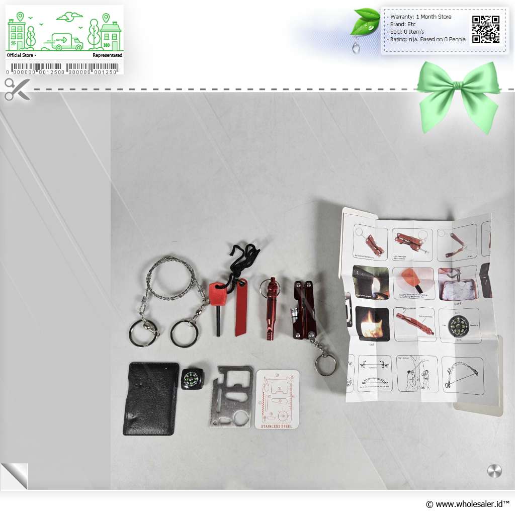 Satu set perlengkapan petualang ini memiliki semua yang Anda butuhkan untuk bertahan hidup di alam liar. Anda akan mendapatkan tang multi tools, kartu multi tools, gergaji kawat, peluit, kompas dan pemantik api flint stone. Terbuat dari bahan berkualitas yang tidak mudah rusak dan cocok untuk penggunaan jangka panjang.