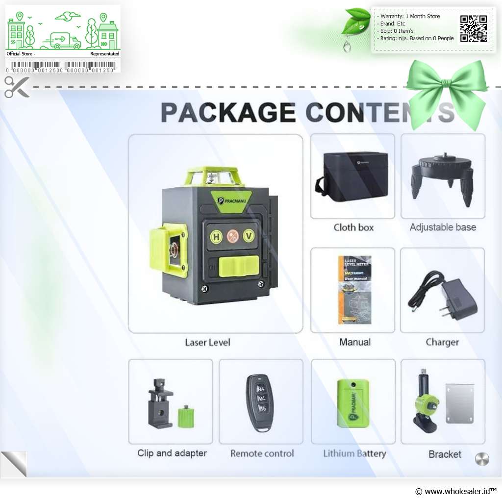 Informasi Produk Pracmanu Laser Level Self Leveling 3D 360 Degree 12 Line 520nm 2400mAh - PC-520
