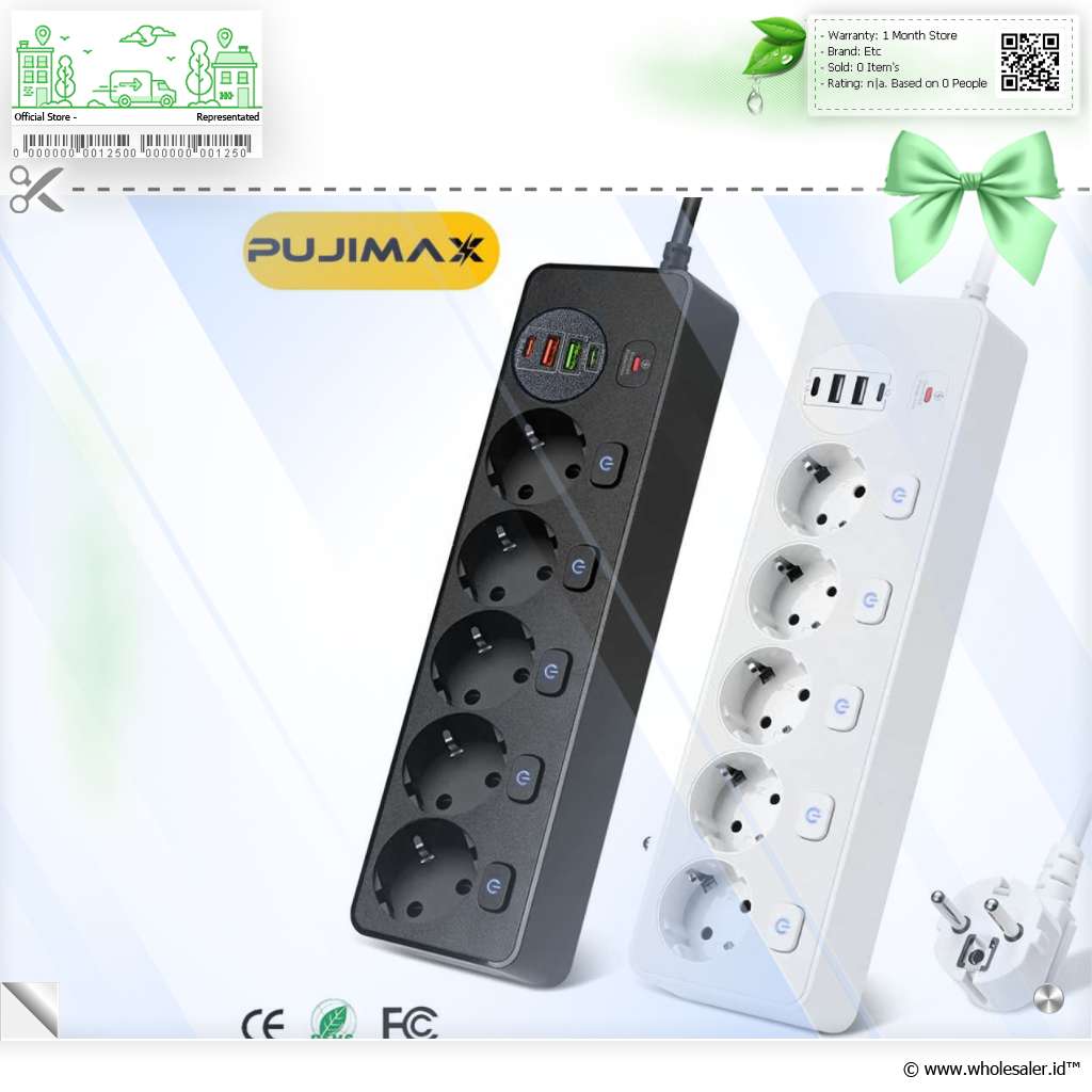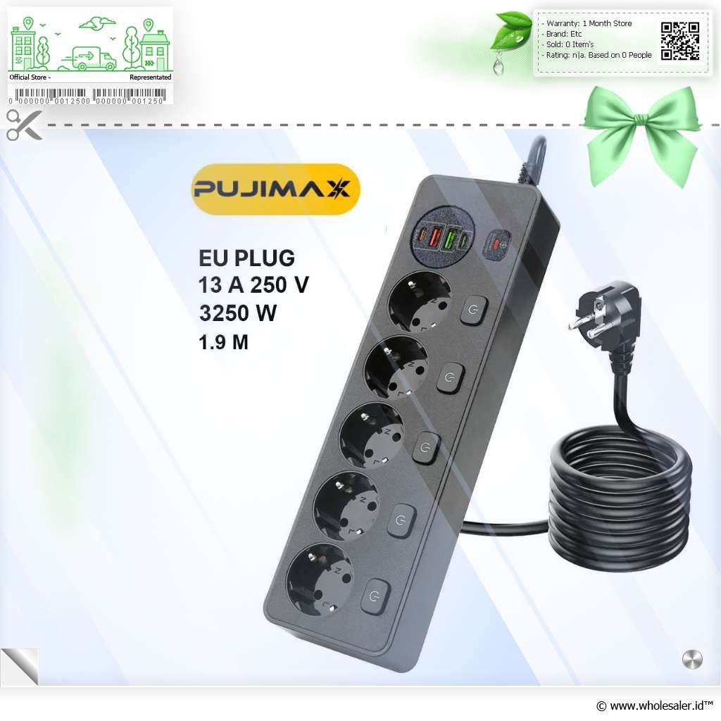 - 1 x PUJIMAX Stop Kontak Power Strip Colokan Listrik USB 250V 3250W 5 Plug - BKL-505EU