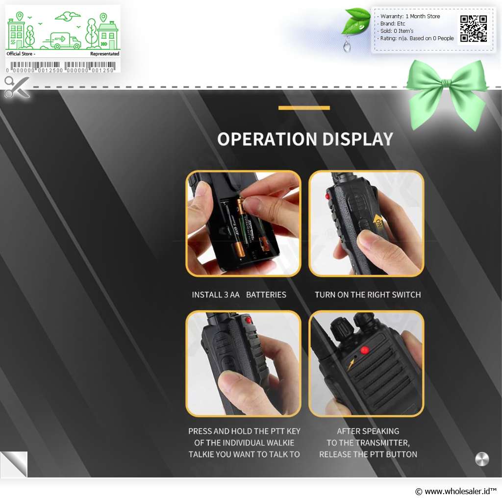 4. Product Listings and DescriptionsAll product descriptions, images, specifications, and prices are provided for informational purposes and may be subject to updates. While wholesaler.id™ strives to ensure that the information on the site is accurate, errors, inaccuracies, or omissions may occur. We reserve the right to correct any errors and to update product information at any time without prior notice.