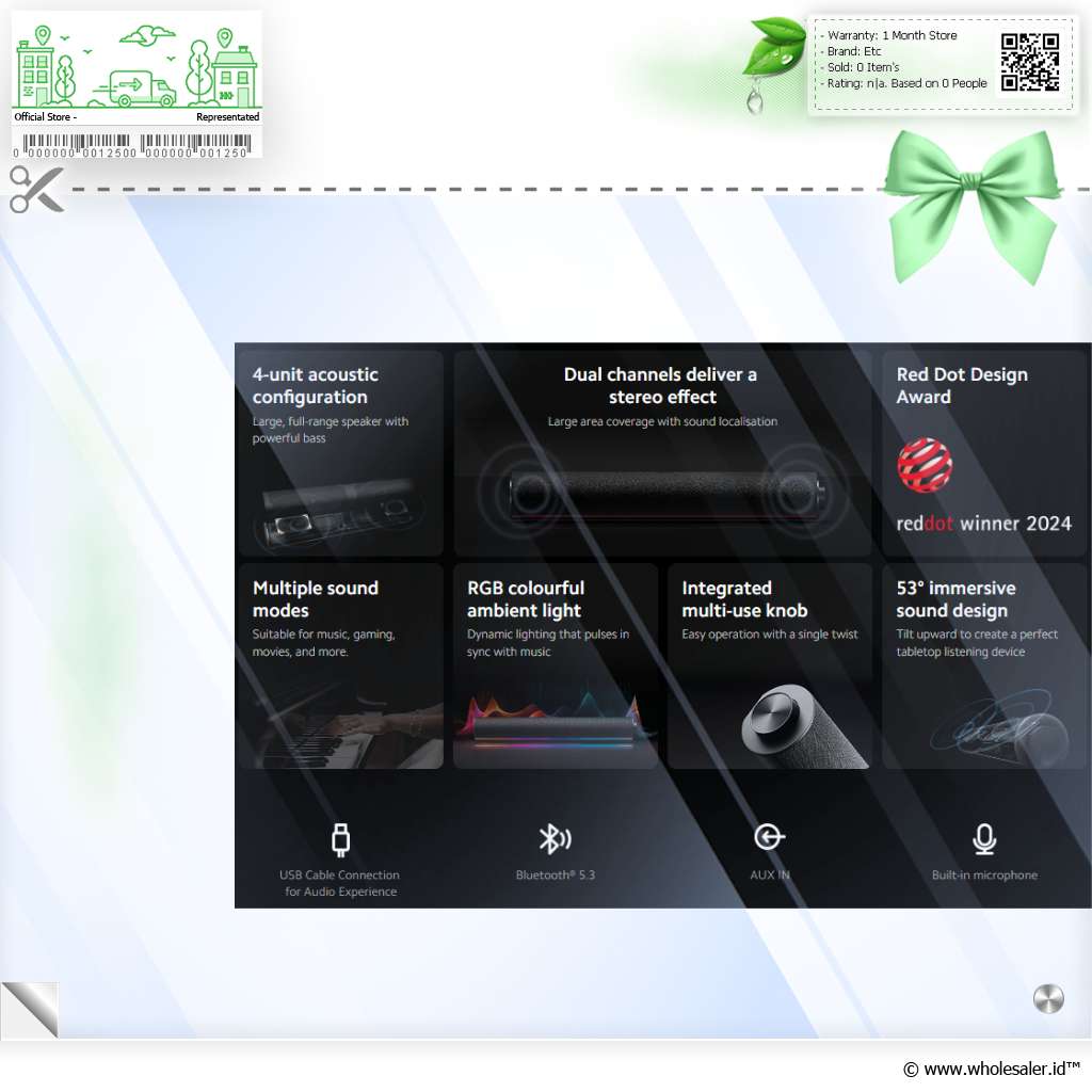 Speaker ini menghadirkan suara jernih dan bass bertenaga dari 4 komponen akustik, efek 3D imersif dengan DSP, koneksi Bluetooth 5.3 stabil hingga 10 M, fungsi handsfree, serta LED RGB dinamis untuk pengalaman audio penuh warna.