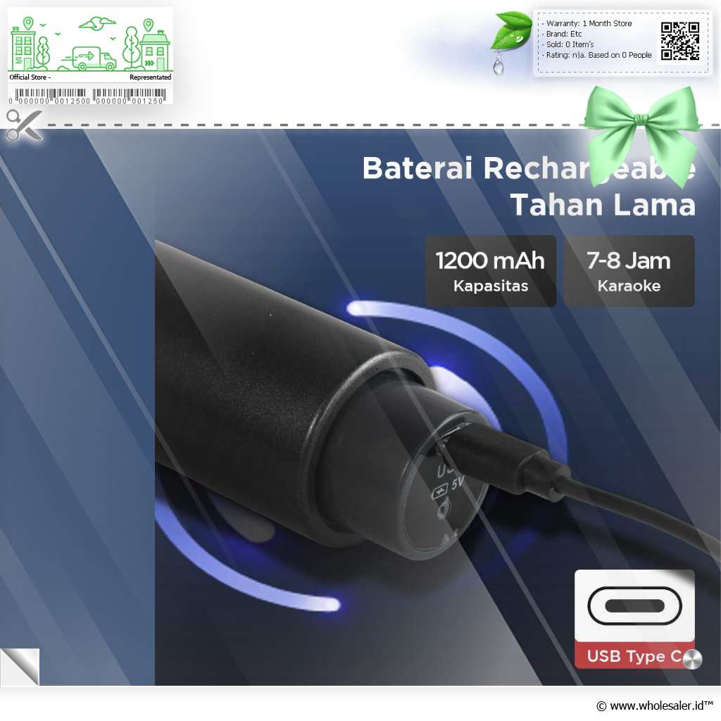 Dimensi | : | Mikrofon 5.1 x 5.1 x 24.5 cm Receiver 3.5 x 2.2 x 11.5 cm Kabel USB Type C Sekitar 80 cm |