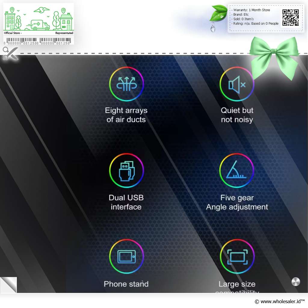 Jaga performa laptop Anda tetap optimal dengan REMAX Laptop Cooling Pad, pendingin premium yang menggabungkan kekuatan, keheningan, dan desain ergonomis dalam satu perangkat. Ditenagai oleh 8 kipas ultra hening, kompatibel untuk laptop 12 - 17.3 Inch, serta dilengkapi fitur-fitur pintar seperti holder smartphone, 5 level ketinggian, dan 2 port USB 2.0 tambahan. Cooling pad ini dirancang untuk memberikan kenyamanan maksimal tanpa suara bising, ideal bagi pengguna profesional, gamer, maupun pekerja hybrid yang menginginkan efisiensi dan kesejukan dalam aktivitas harian.