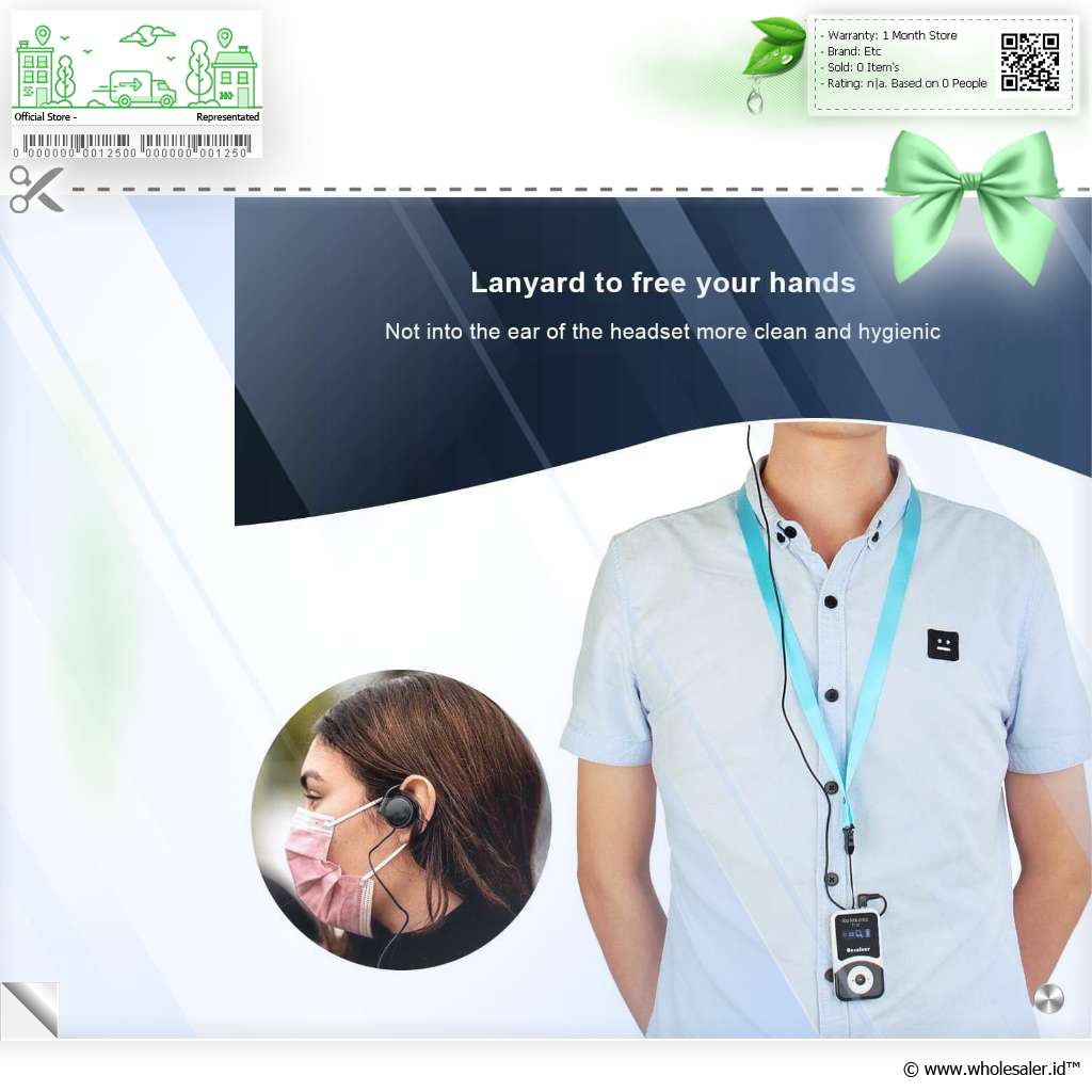 |  Desain Portable  Hadir dengan desain yang ringkas, mudah dibawa, dan disimpan. Saat sedang mendengarkan pemandu wisata, tidak perlu repot untuk memegang receiver karena sudah dilengkapi dengan lanyard.  |