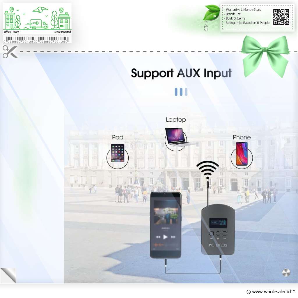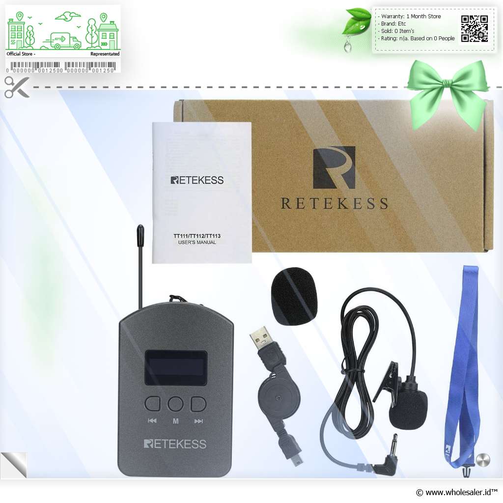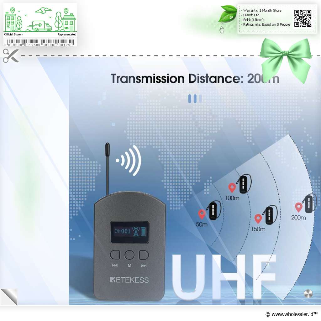 Dilengkapi dengan layar LED, jarak transmisi 200 M, baterai 1900 mAh, dan mampu terhubung ke 36 channel. Kompatibel dengan audio tour guide receiver RETEKESS TT111.