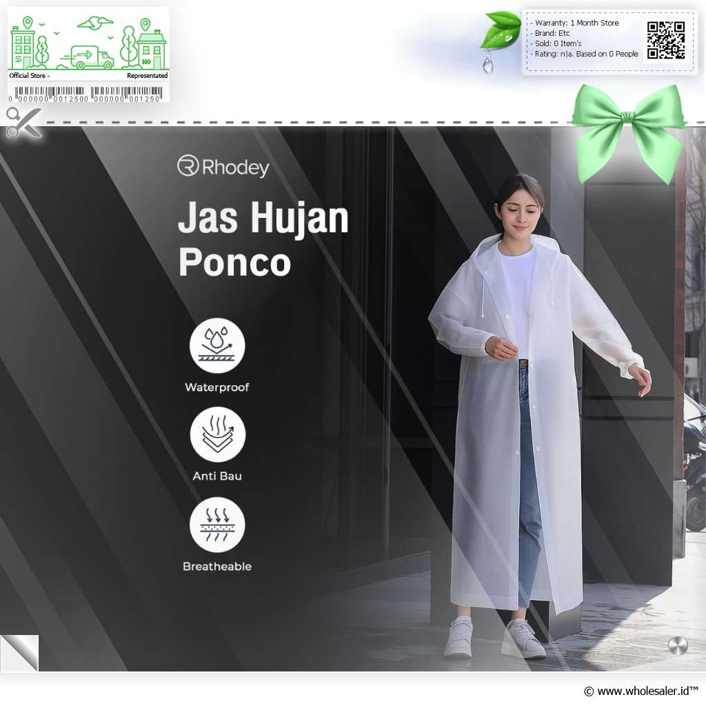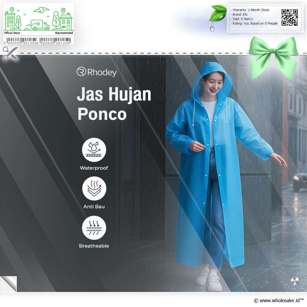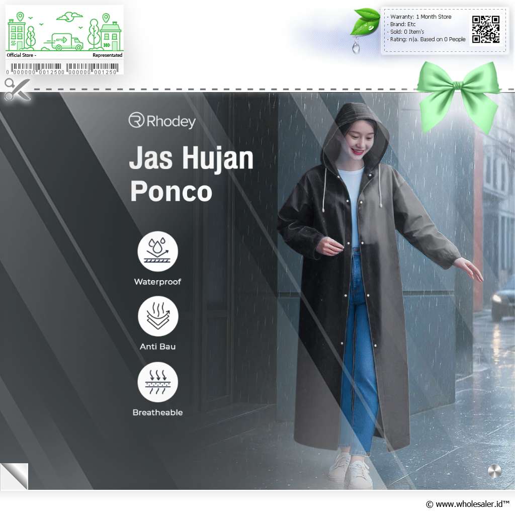 Lindungi tubuh dari guyuran air hujan saat berkendara dengan menggunakan jas hujan dari Rhodey. Menawarkan model ponco, jas hujan ini mudah digunakan dan dapat melindungi dari bagian atas dan bawah tubuh dari air hujan. Semakin lengkap dengan tali serut untuk melindungi wajah dari rintik hujan.